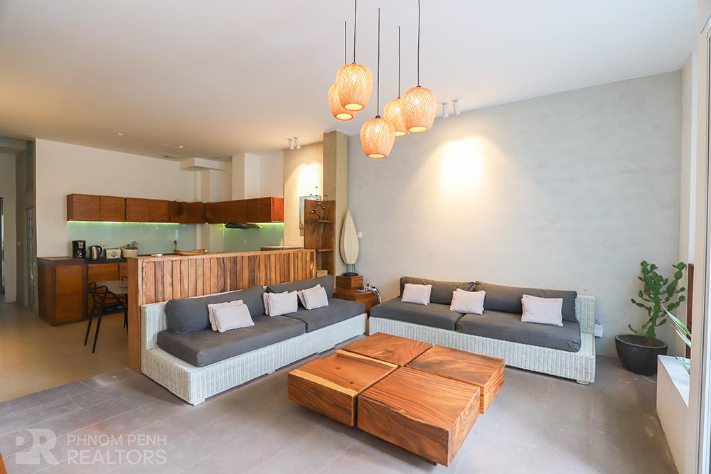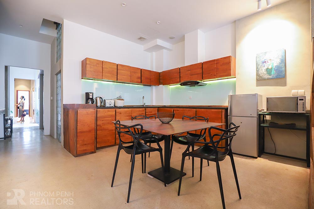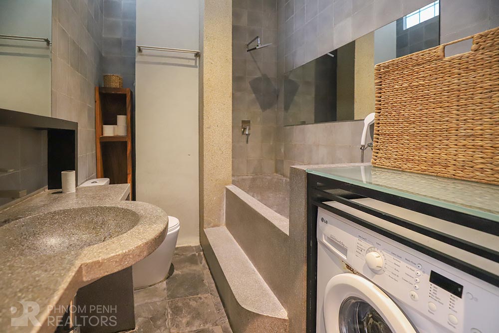 This apartment is located in Tonle Bassac neighborhood has 2 bedrooms , 1 bathroom, natural light, a flat screen TV, new furnishings and built-in closet. The unit is equipped with a balcony, shared terrace with Jacuzzi and a washing machine. Building amenities include internet, cable, cleaning 3 times per month, garbage collection, security and motorbike, bicycle parking.