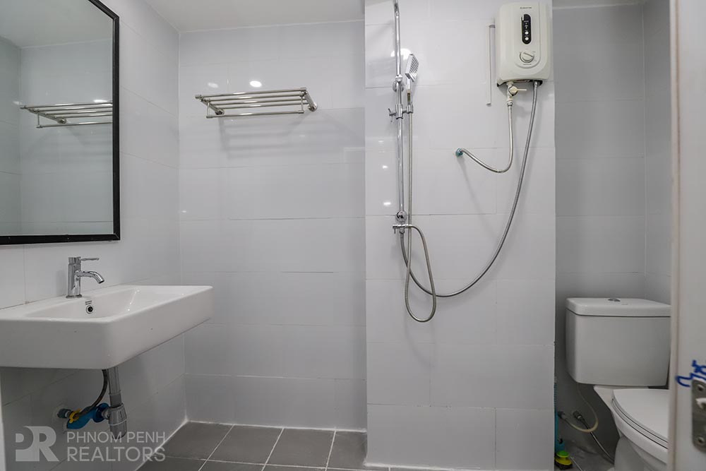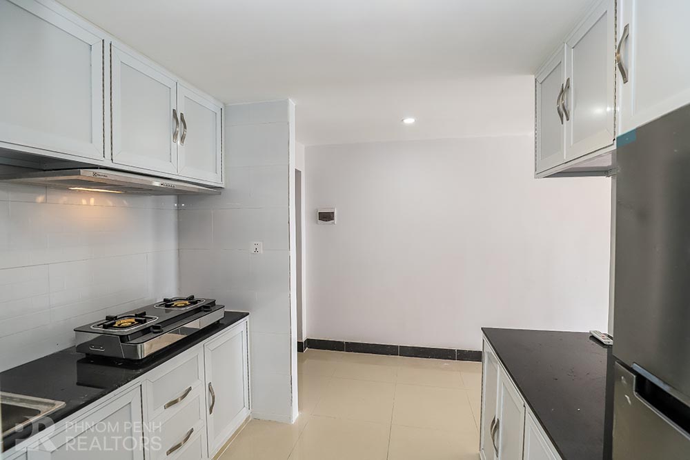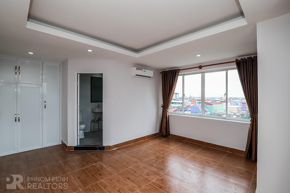 This condominium is located in Beong Tumpun area has 2 bedrooms, 2 bathrooms and a lot of natural light. This unit is equipped with hardwood floor, kitchen set,TV stand, built-in closet and a balcony. Building amenities include security, elevator, and parking for car, motorcycle.