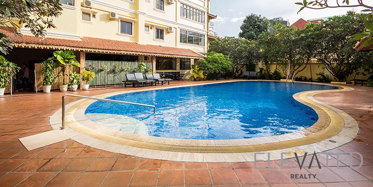 This brand new apartment with natural light is located in the Boeng Keng Kang I area neighborhood has 2 bedrooms, 2 bathrooms, 1 balcony. This furnished unit is equipped with a flat screen TV, air-con, refrigerator, oven, hot water, washing machine and closet. The unit services included with cable TV, Internet, water, garbage collection and parking. Building amenities include with security, elevator, fitness center, swimming pool and parking for car, motorbike, and bicycle.