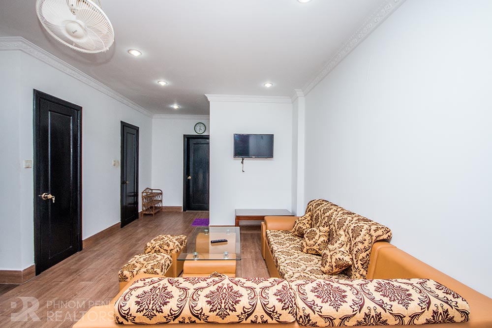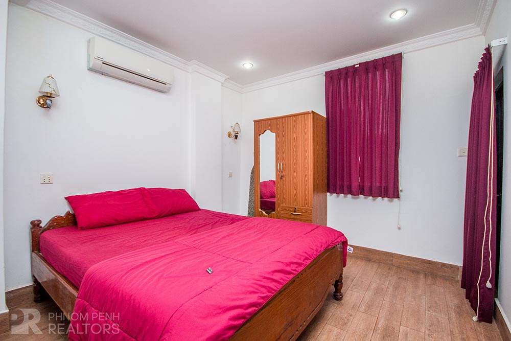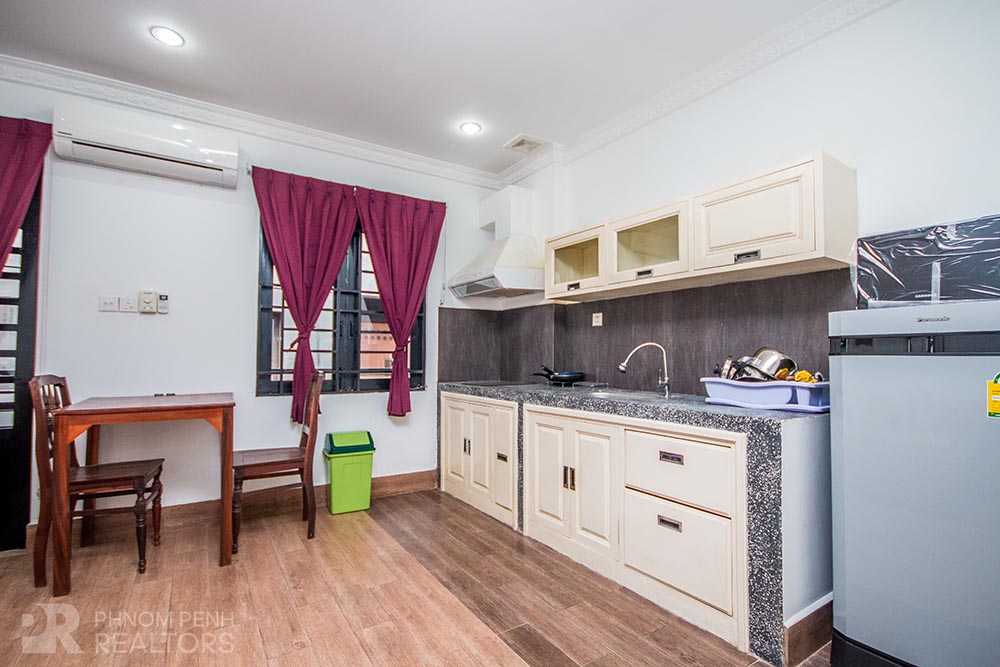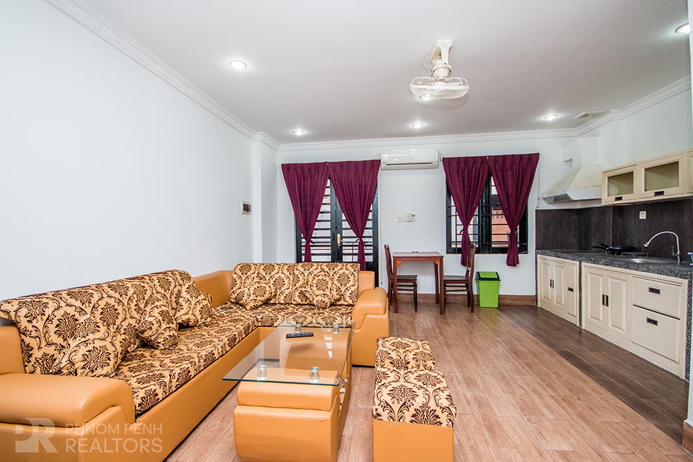 This apartment is located in BKK1 neighborhood has 1 bedroom, 1 bathroom, 1 laundry room and natural light. The furnished unit is equipped with air-con, hot water, microwave, in-unit washing machine, a built-in closet, a flat screen TV and a balcony. The unit services included internet and cable TV.