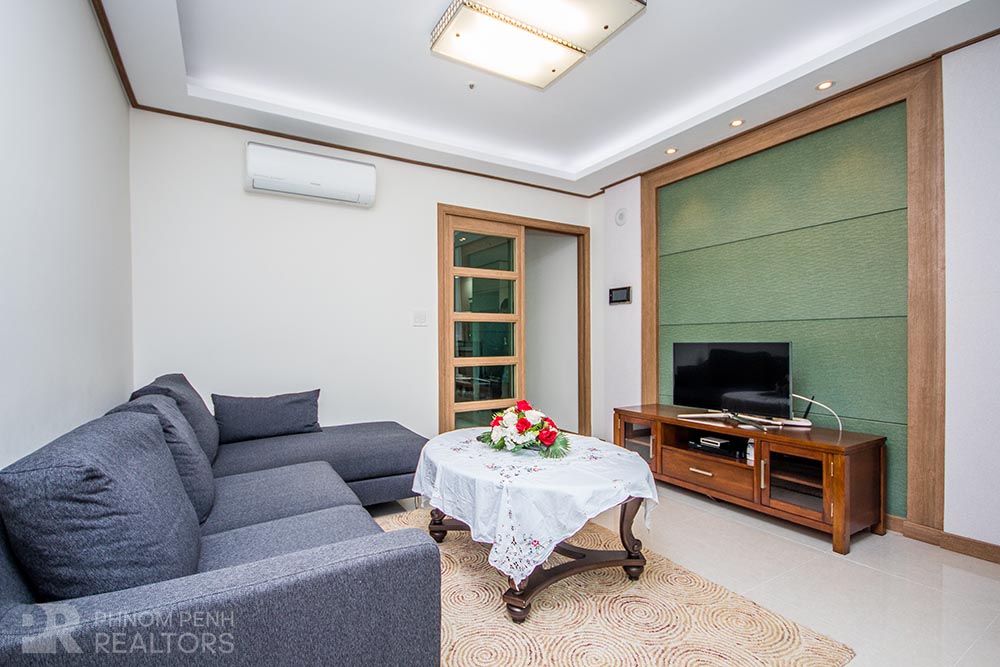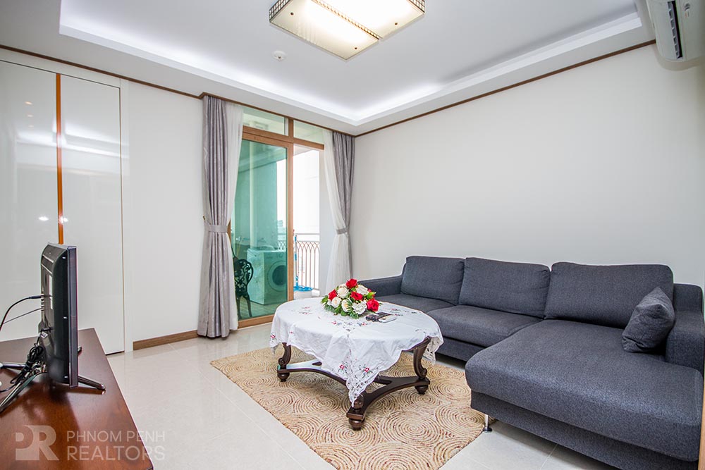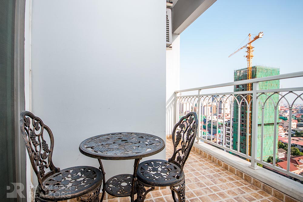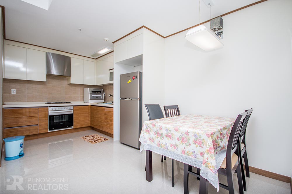 This condominium is located in BKK1 area has 1 bedroom, 1 bathroom and a lot of natural light. This furnished unit is equipped with a flat screen TV, air-con, hot water, oven, washing machine, built-in storage cabinet, built-in closet and balconies. The unit services included internet, cable TV and management fee. Building amenities include security, swimming pool, fitness center, common area, play ground, 5 elevators, parking for car, motorbike and bicycle.