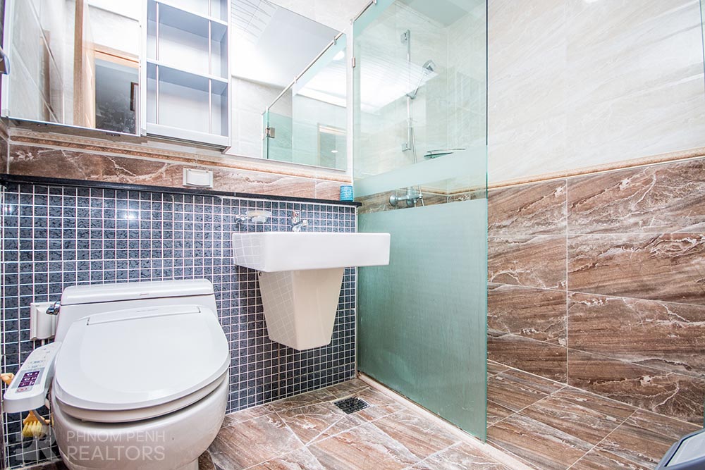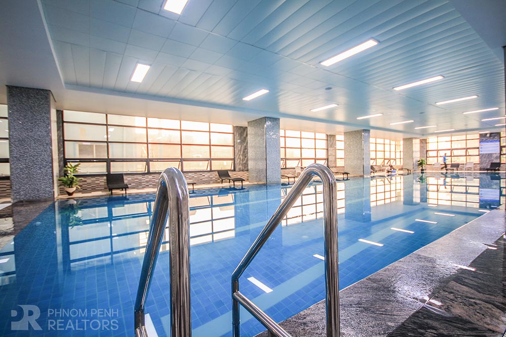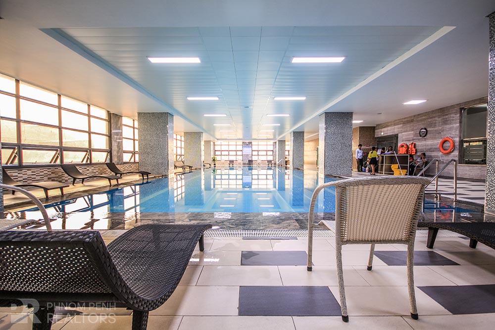 This condominium is located in BKK1 area has 1 bedroom, 1 bathroom and a lot of natural light. This furnished unit is equipped with a flat screen TV, air-con, hot water, oven, washing machine, built-in storage cabinet, built-in closet and balconies. The unit services included internet, cable TV and management fee. Building amenities include security, swimming pool, fitness center, common area, play ground, 5 elevators, parking for car, motorbike an