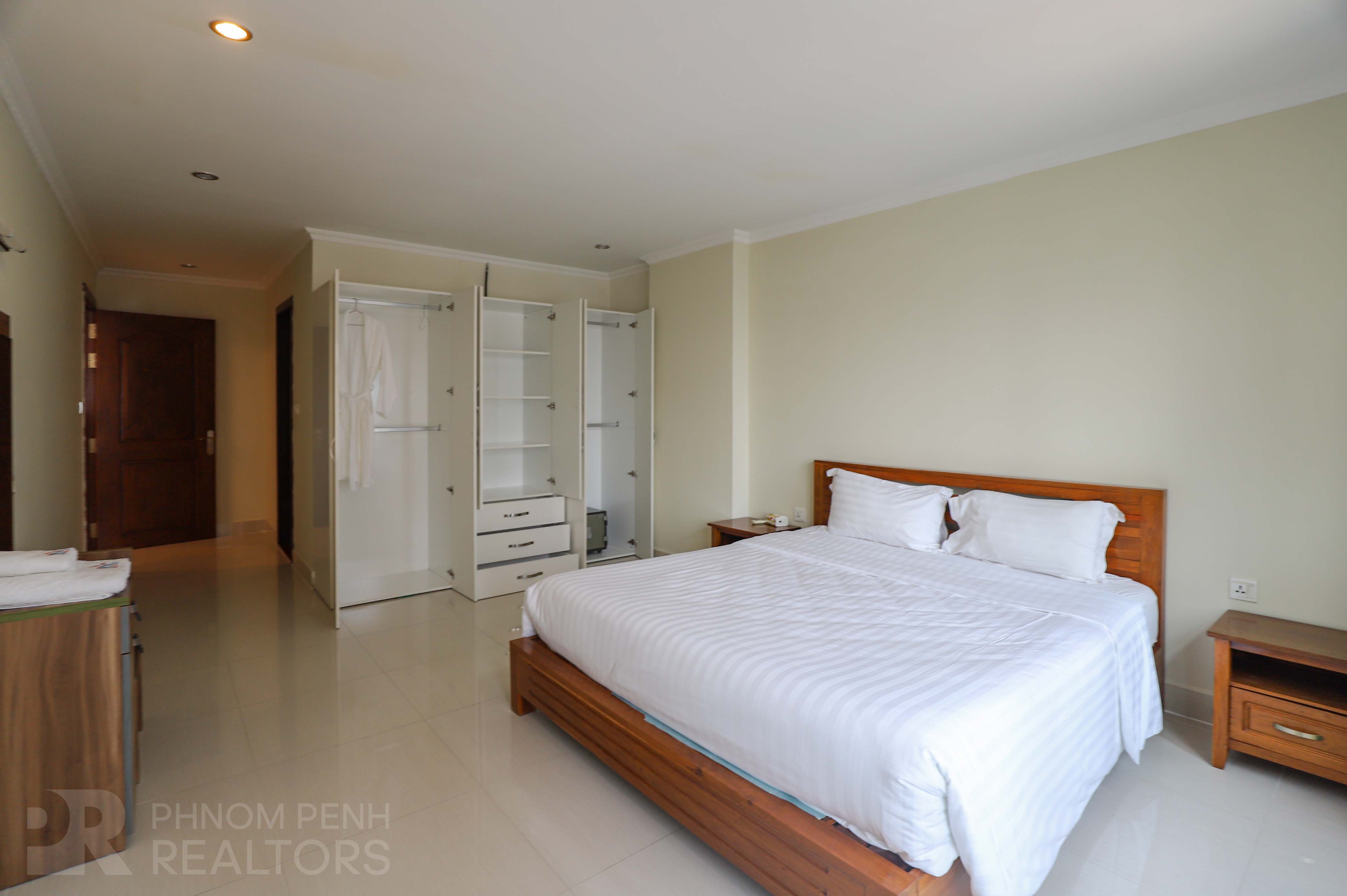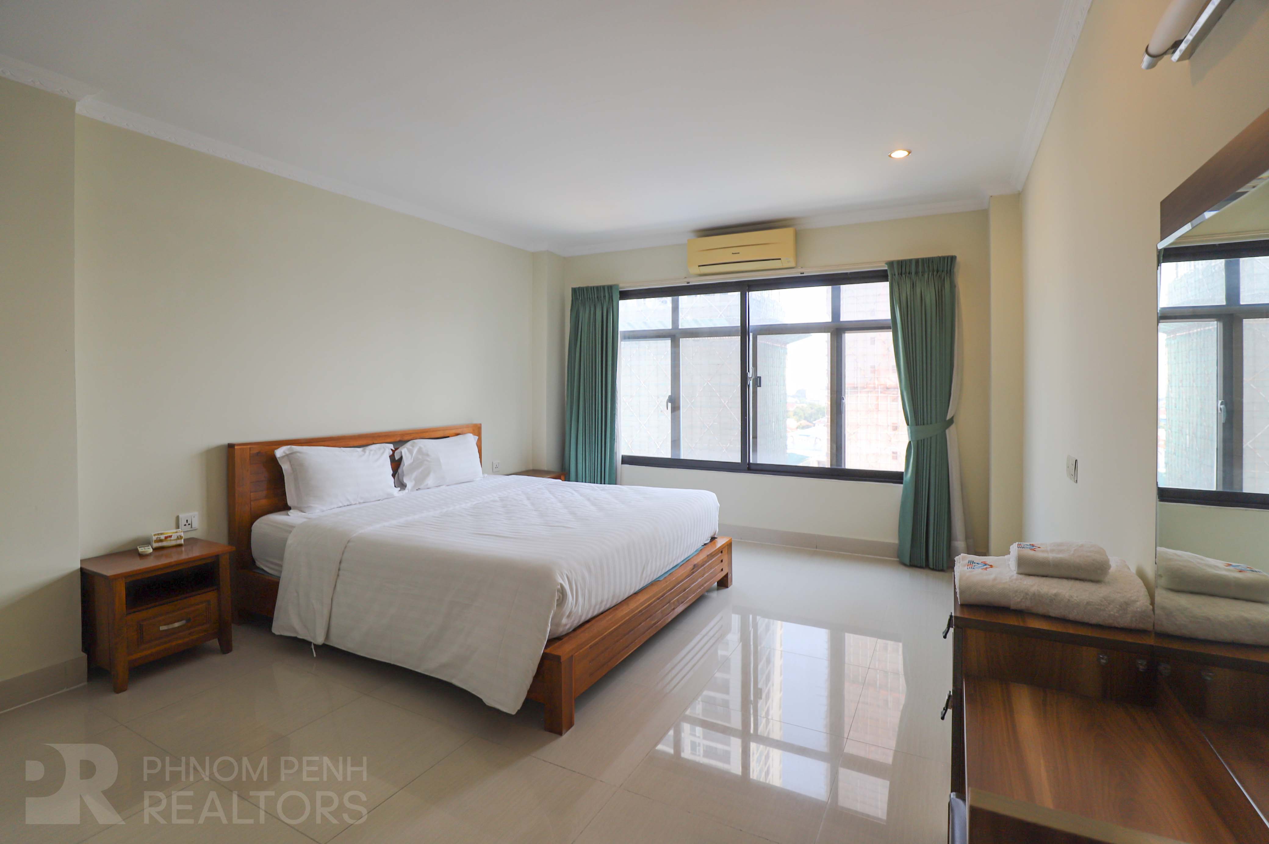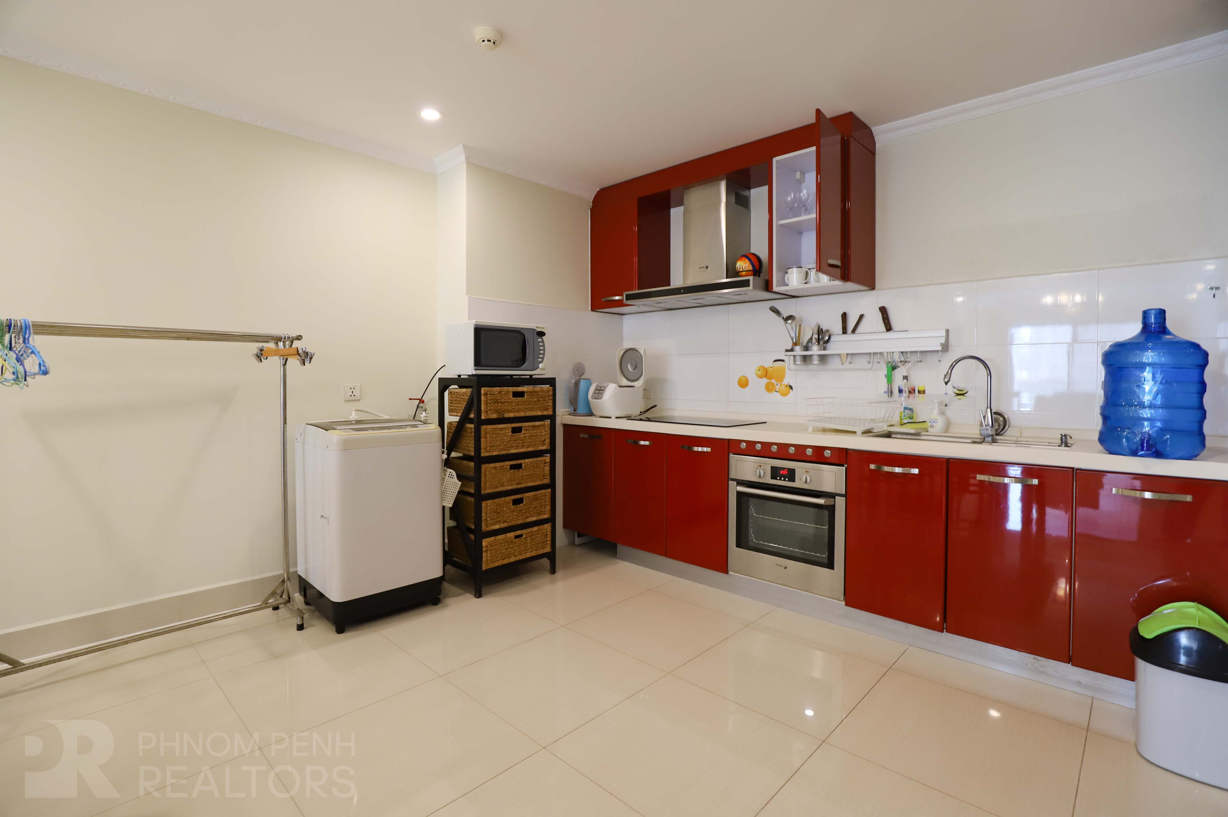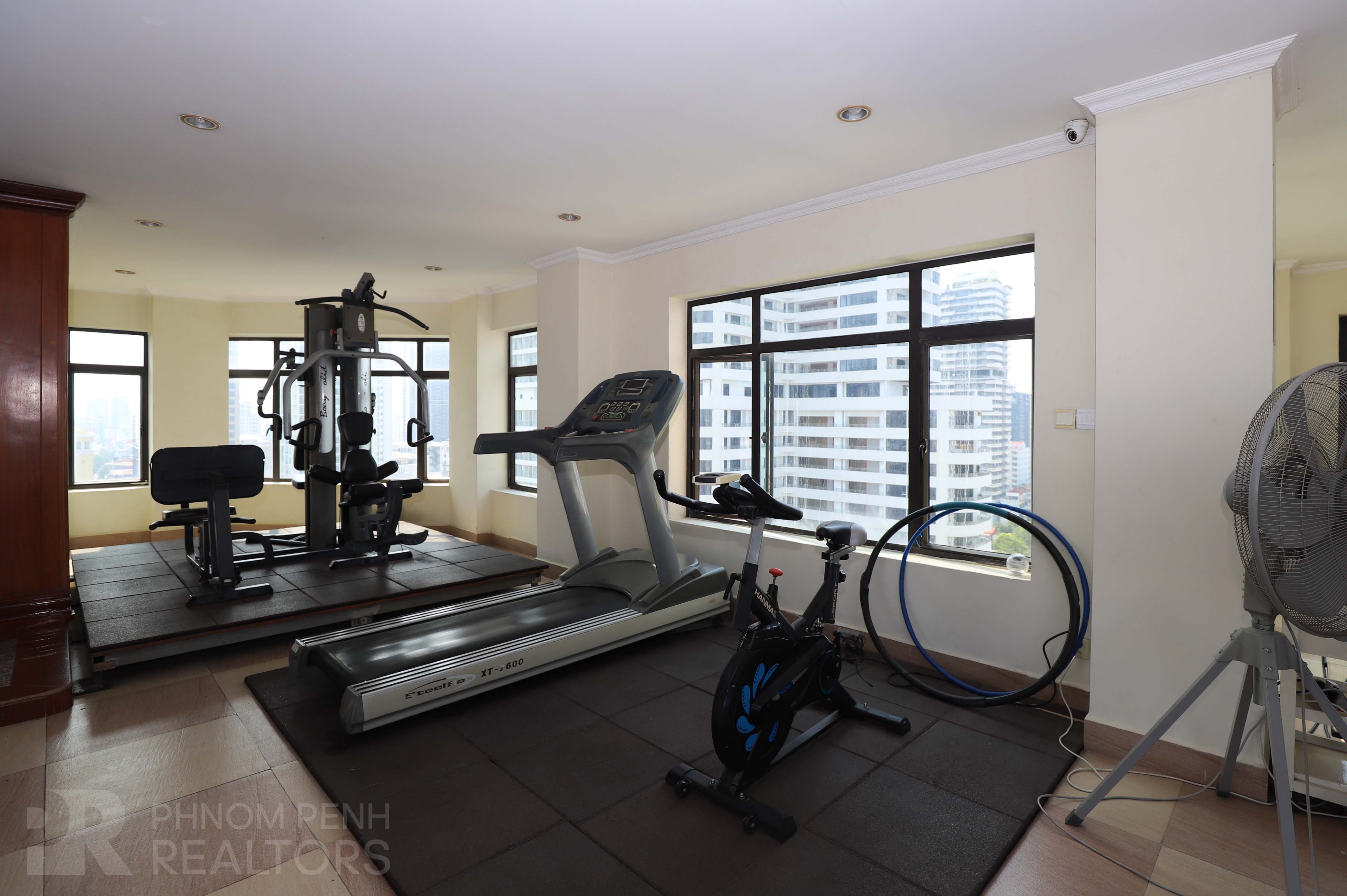 This luxurious apartment is located in the BKK1Â neighborhood has 1 bedroom, 2 bathrooms, a flat screen TV, a built in closet, and natural light. The unit is equipped with a balcony, rooftop shared, city view, a microwave and in an unit washing machine. Building amenities include security, internet, cable, water supply, cleaning five times a week, propane, garbage collection, car, motorbike, and bicycle parking.