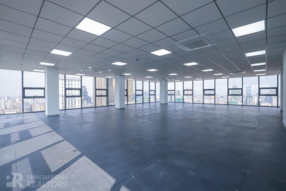 This commercial office space with full of natural light is located in the Boeng Keng Kang I area neighborhood. It has many open space from the 1st floor to the 24th floor. The commercial space is equipped with glass wall and air conditioner.