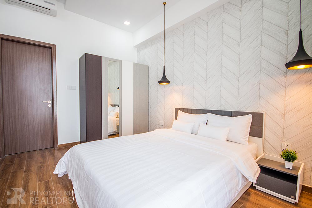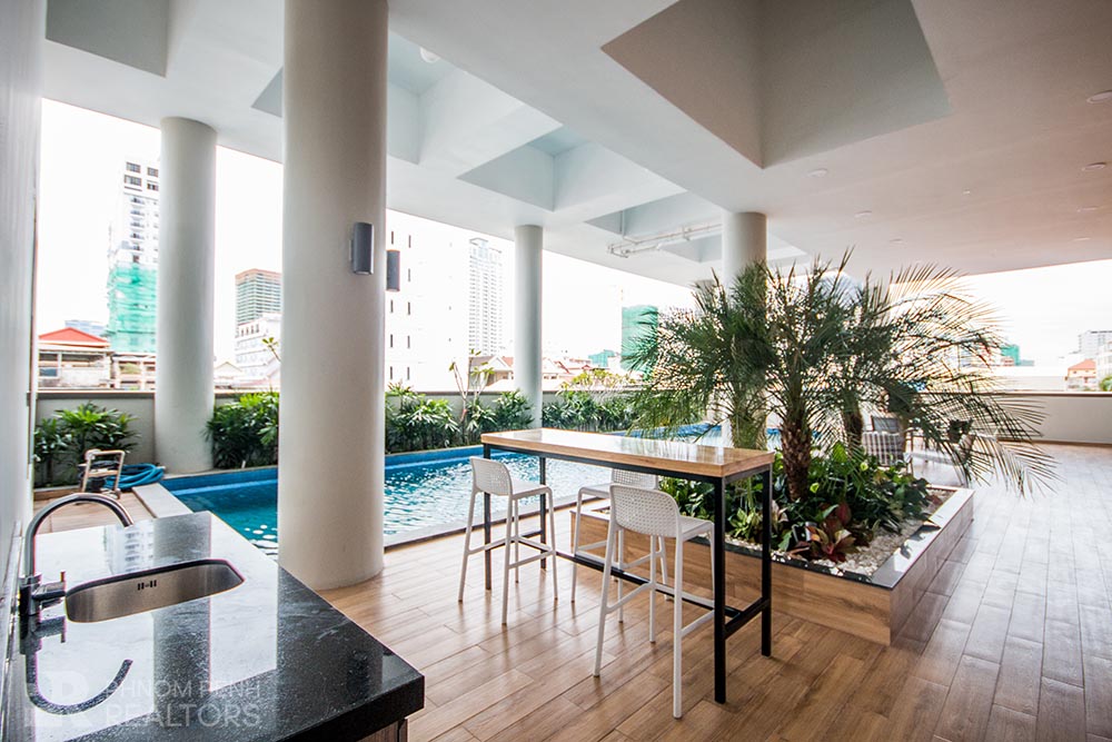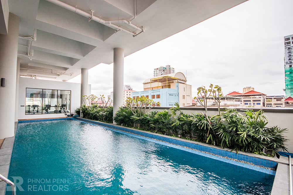 This Condominium is located in Beong Keng Kang III neighborhood has 1 bedroom, 1 bathroom and natural light. This furnished unit is equipped with air cons, hot water, washing machine and a flat screen TV. The unit services included internet, cable, water supply and garbage collection. Building amenities include 2 elevators, fitness center, swimming pool, massage spa, security, generator, parking for car($50/month), motorbike and bicycle.