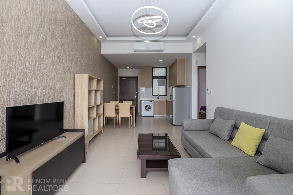This beautiful condominium is located in BKK III neighborhood has 2 bedrooms and 1 bathroom. This unit consists hardwood floor, separated kitchen and balcony full of natural light. The unit provided with air cons, hot water, microwave, washing machine, and a fridge. For further convenience, the services included cleaning once a week, propane, internet, cable TV (6$/month), garbage collection (5$/month), generator, elevator, gym, swimming pool and parking for car ( 50$/month) motorbike, bicycle.