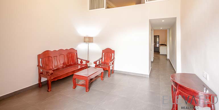 This townhouse is located in BKK1 neighborhood has 2 bedrooms, 1 bathroom, flat screen TVs, hardwood floor, new furnishings, and natural light. The unit is equipped with a balcony, and unit washing machine. Building amenities include internet, cable, propane.