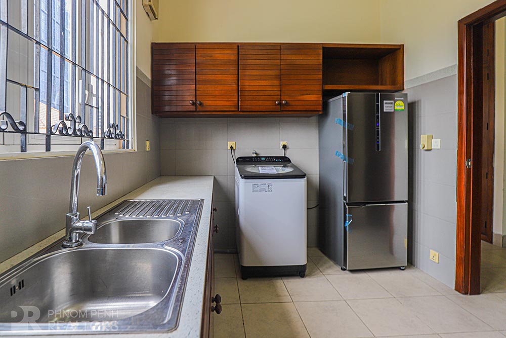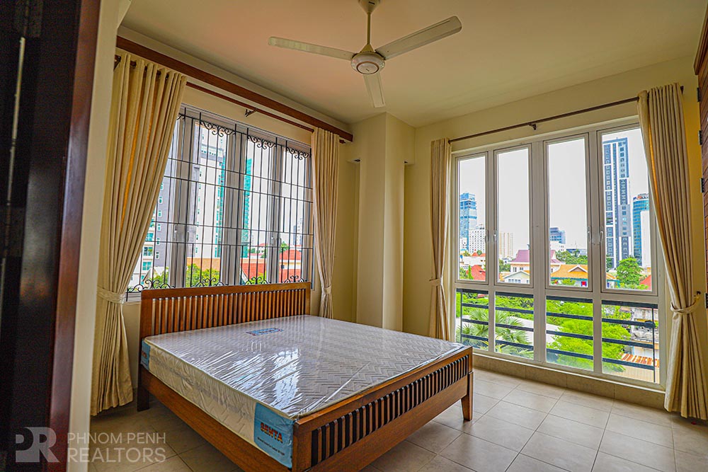 This beautiful apartment is located in the Boeng Keng Kang I has 3 bedrooms, 3 bathrooms and a lot of natural light. This fully furnished unit is equipped with flat screen TVs, air-con, refrigerator, oven, hot water, washing machine, built-in closets and city views balconies. The unit services included with internet, cable TV Building amenities include with security, fitness center, elevator and parking space for car, motorbike and bicycle.