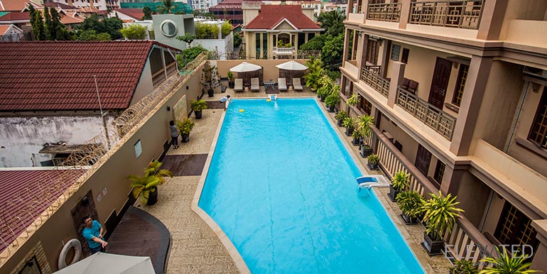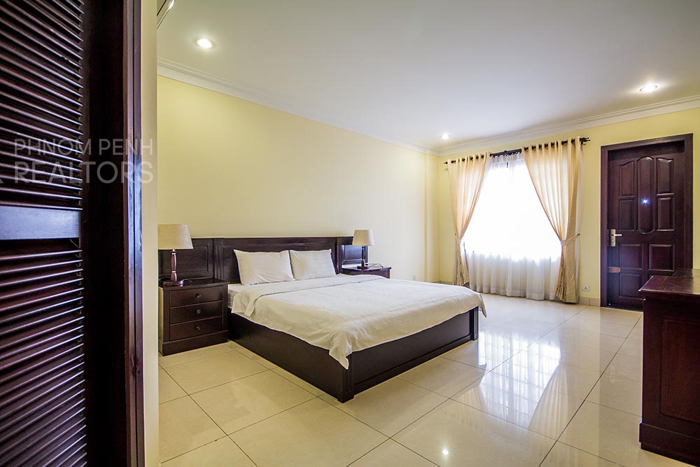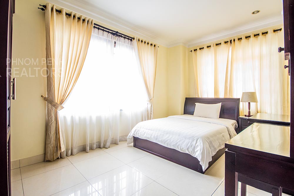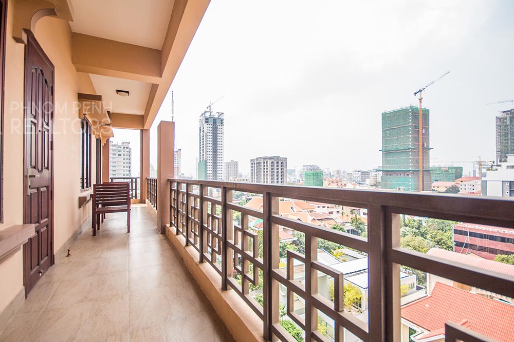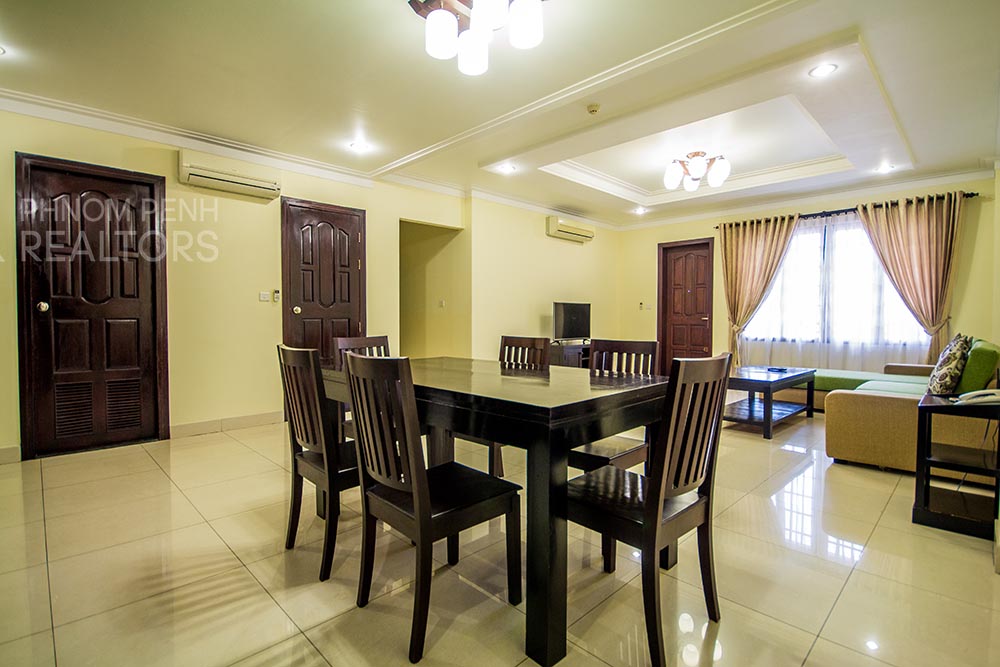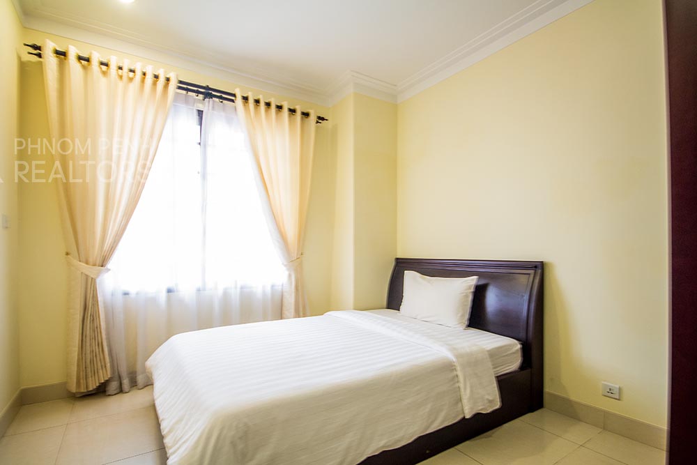 This beautiful apartment is located in BKK1 neighborhood has 3 bedrooms, 3 bathrooms, new furnishings, a separate kitchen and city view balcony. The unit is equipped with a washing machine, refrigerator, air-cons and built in closets. Building amenities include a fitness center, a swimming pool, a sauna, a steam room, security, cable, internet, water supply, garbage collection, cleaning 4 times per week, car, motorbike, and bicycle parking.
