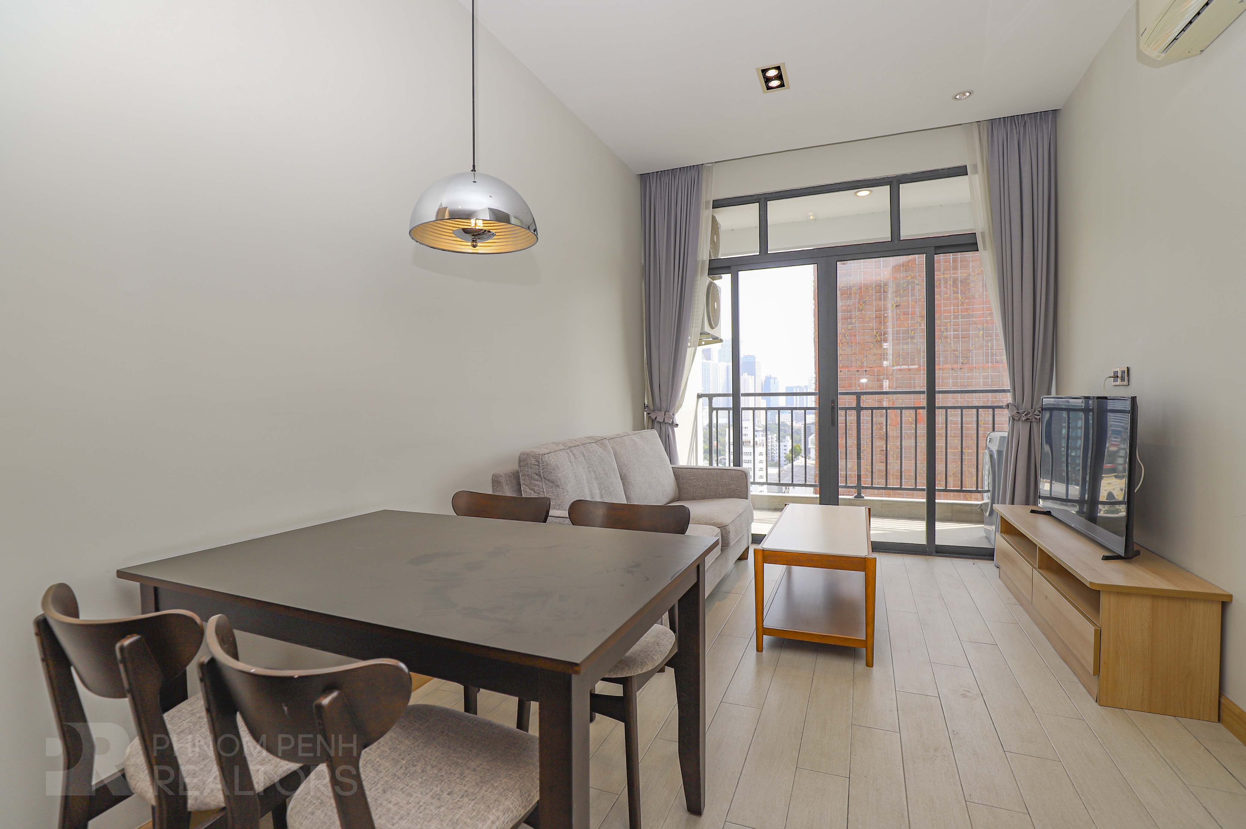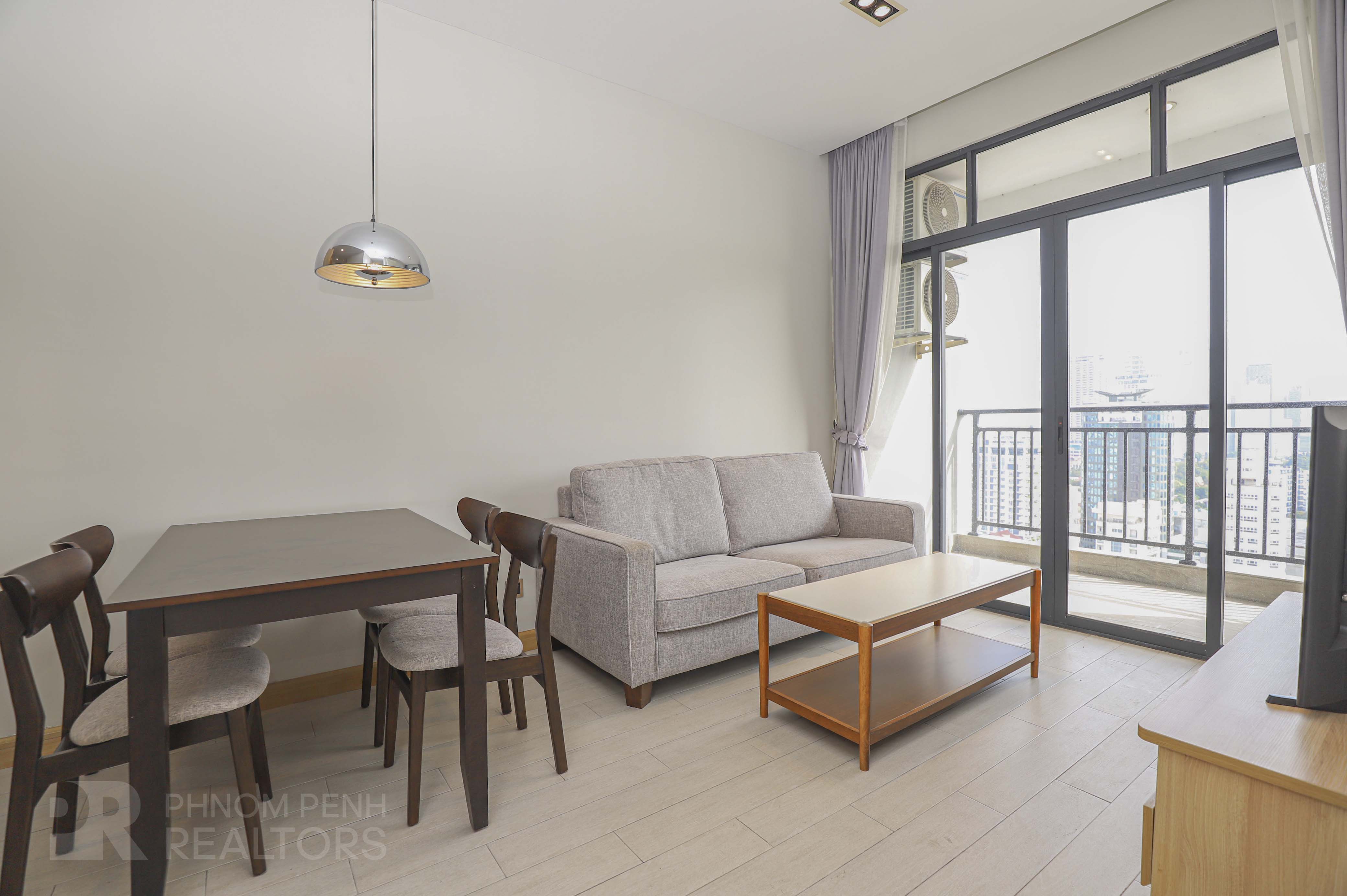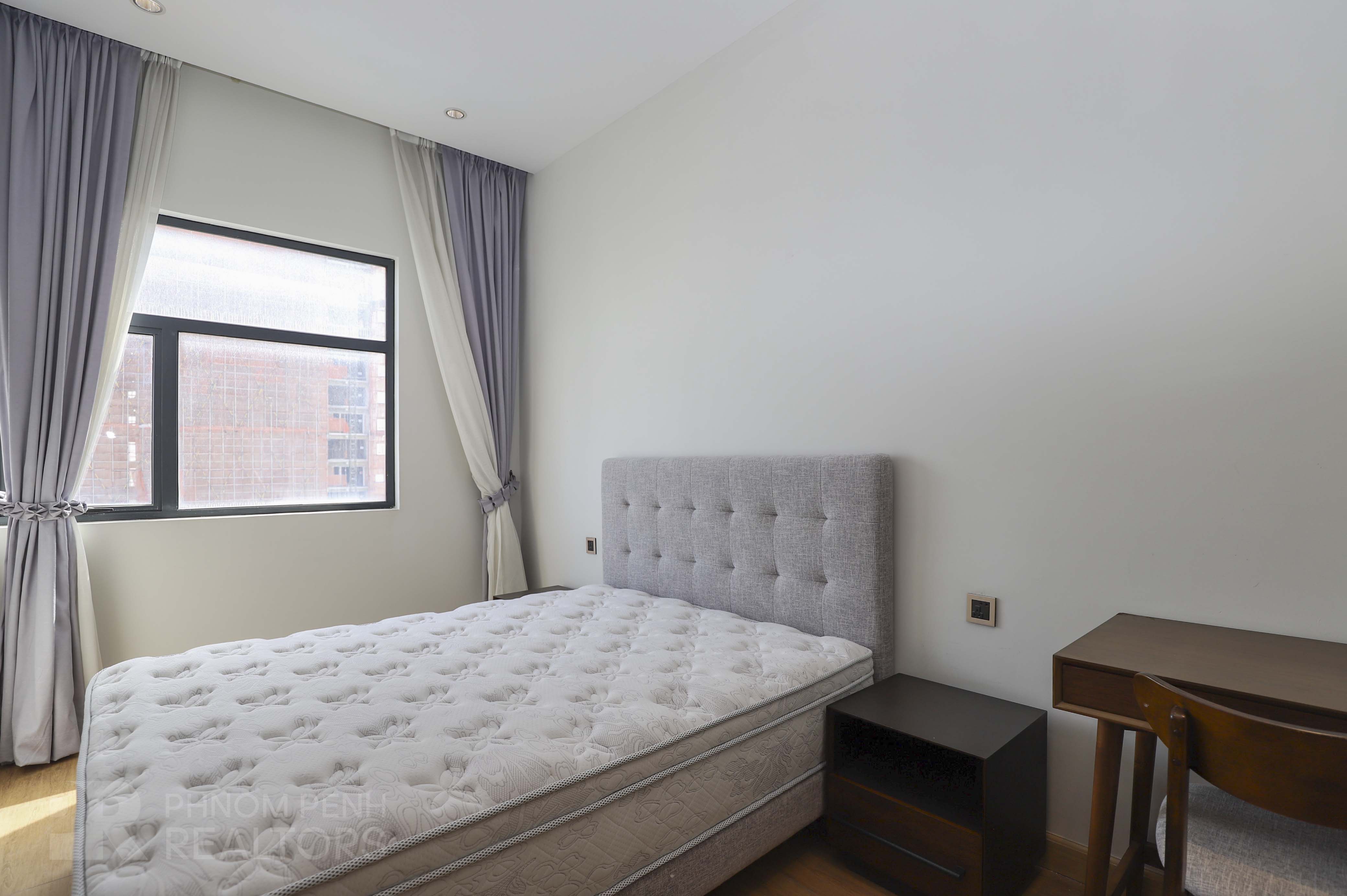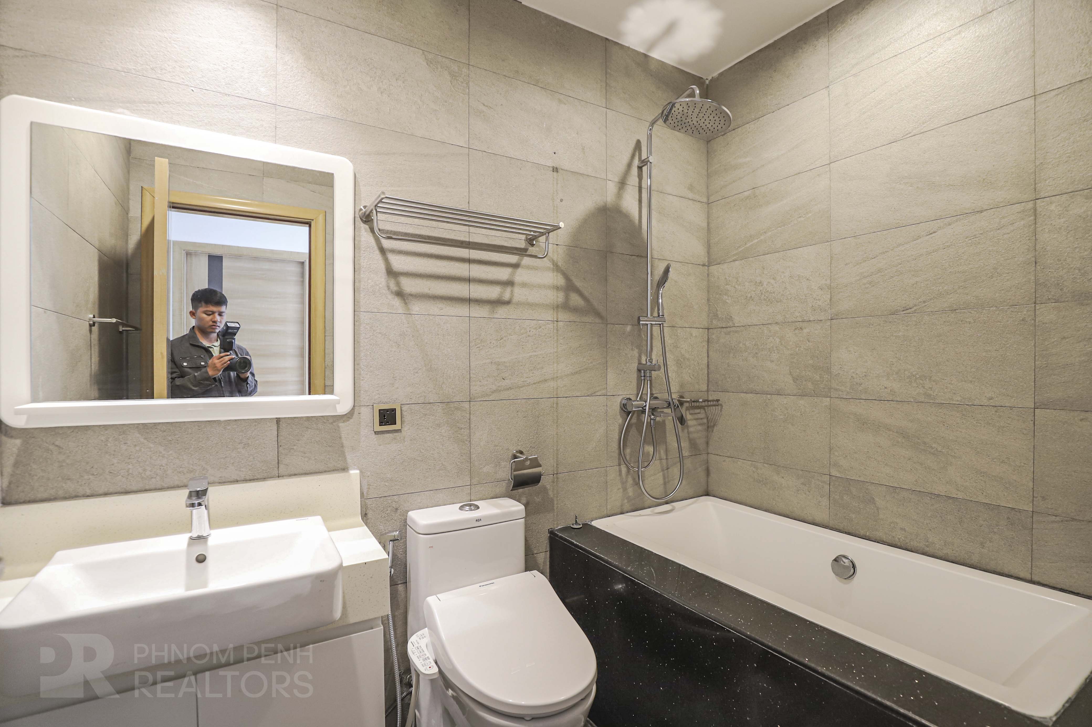 This condominium is located in BKK1 area has 1 bedroom, 1 bathroom and a lot of natural light. This furnished unit is equipped with a flat screen TV, air-cons, hot water, washing machine, propane, built-in closets and a balcony. Building amenities include generator, swimming pool, fitness center, security, parking for car, motorbike and bicycle.