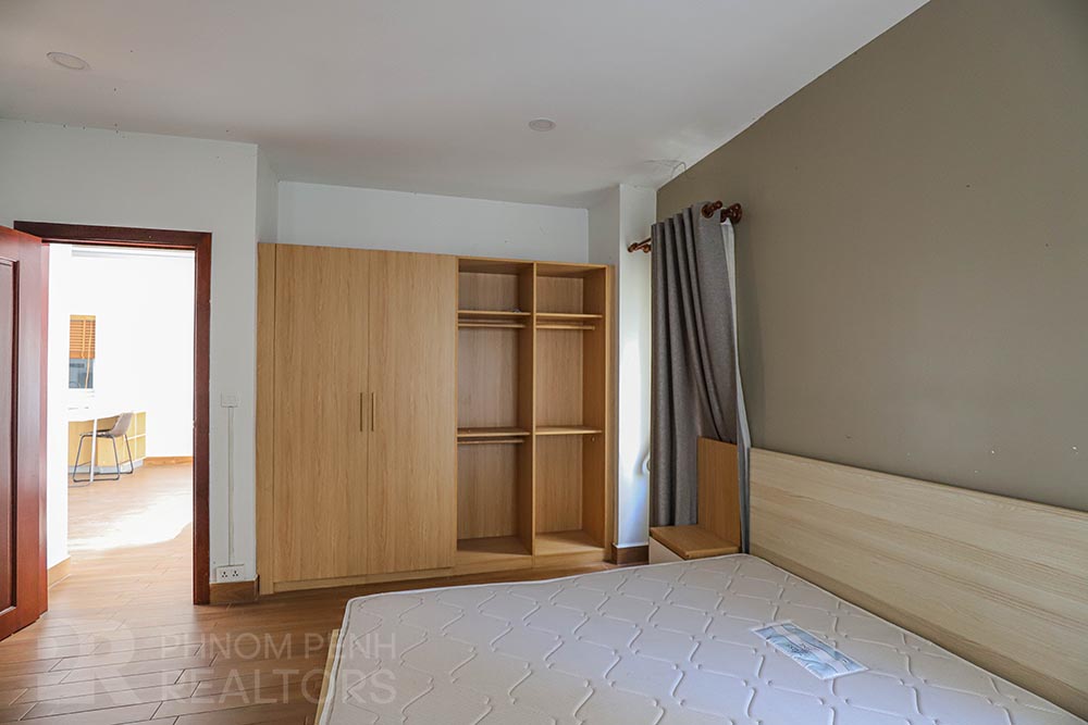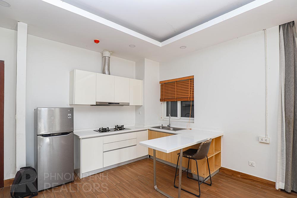 This apartment is located in Boeng Keng kang III. it has 2 bedrooms, 2 bathrooms, built-in closets, flat screen TV and new furnishings. This unit is equipped with air conditioners, stove, hot water, balcony and a washing machine . Building is equipped with security and parking space for a motorbike or a bicycle. Services include internet ,garbage collection ,cable-TV, and cleaning one time per week.