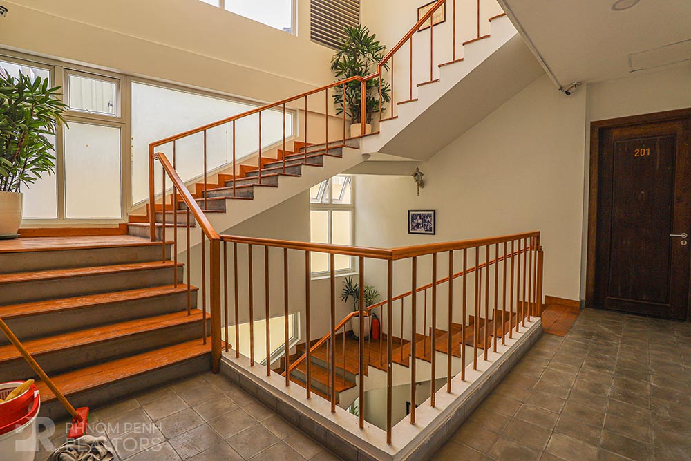 This beautiful apartment is located in Boeung Keng Kang I neighborhood, it has 2 bedrooms, 2 bathrooms, flat screen TVs, natural light and furnished. The unit is equipped with a balcony, stove, refrigerator and washing machine. Building amenities include cleaning once a week, internet, cable, security, water supply, garbage collection and parking (moto and bicycle parking).