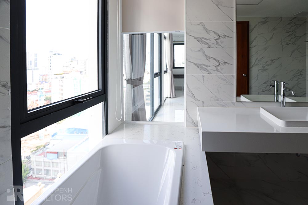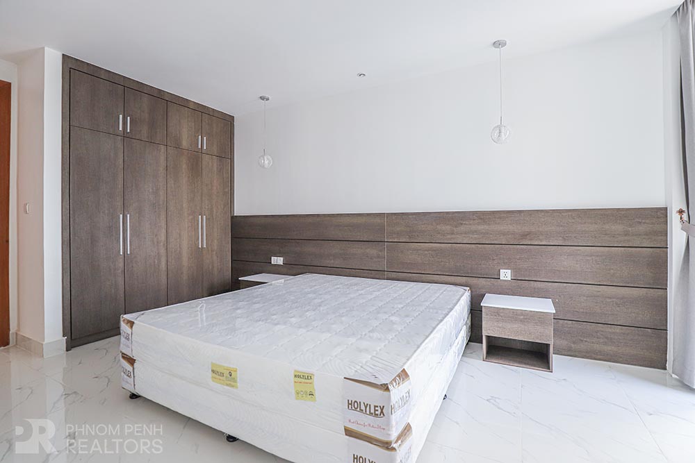 This beautiful apartment is located in Boeung Keng Kang I area, it has 2 bedrooms, 2 bathrooms, built in closets, natural light, outdoor space, city view and furnished. The unit is equipped with a balcony, cabinets, stove and a washing machine. Building amenities include security, internet, cable, cleaning twice a week, change bedsheet once a week and parking (motorbike and bicycle).