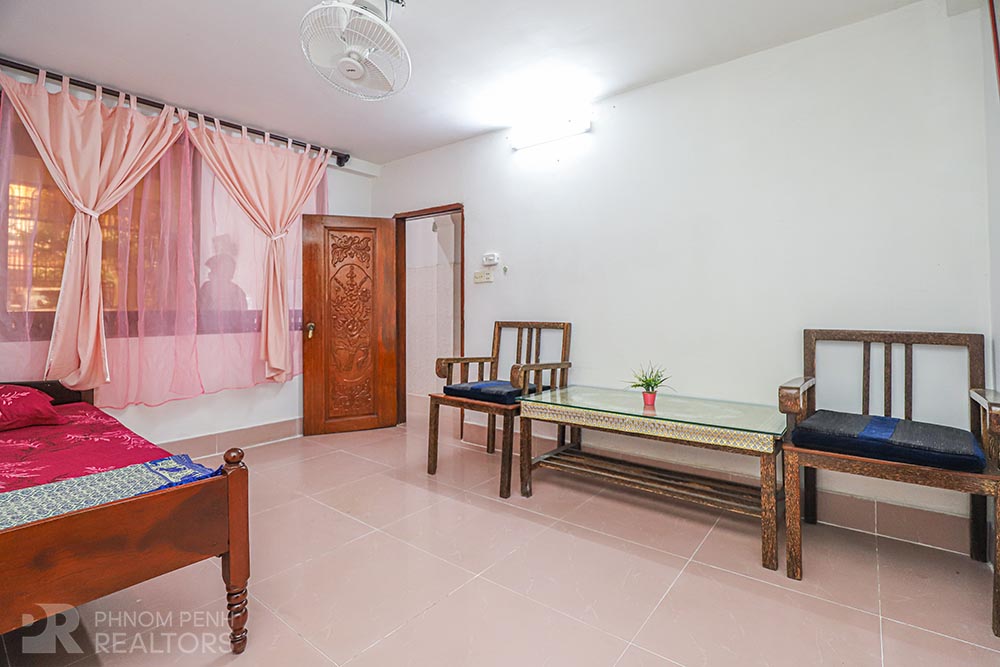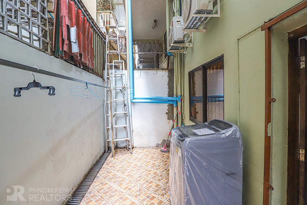 This townhouse is located in Boeung Keng Kang III, it has 3 bedrooms, 3 bathrooms, flat screen TVs, wooden furniture, natural light, outdoor space and furnished. The unit is equipped with a refrigerator, stove and washing machine. Building amenities include parking (motorbike and bicycle).