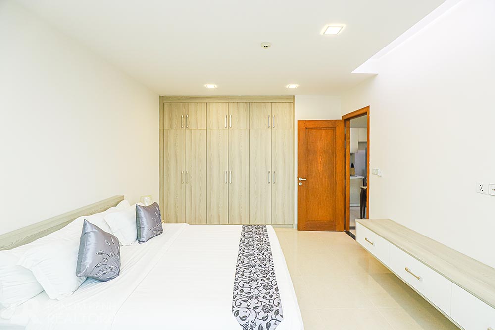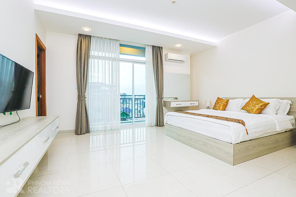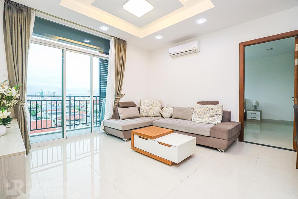 This charming apartment is located in Boeung Keng Kang III neighborhood, it has 2 bedrooms, 2 bathrooms, flat screen TVs, natural light, outdoor space, city view and furnished. The unit is equipped with a balcony, oven, microwave, refrigerator and a washing machine. Building amenities include security, internet, cable, water supply, cleaning once a week and parking (car, motorbike and bicycle).