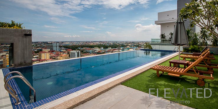 This condominium with full of natural light is located in the Boeng Tumpun area neighborhood. It has 1 bedroom, 1 bathroom and a balcony. This furnished unit is equipped with air-con, hot water, refrigerator, a flat screen TV, washing machine and built-in closets. Building amenities include security, elevators, fitness center, swimming pool, kid playground, parking space for car, motorcycle and bicycle.