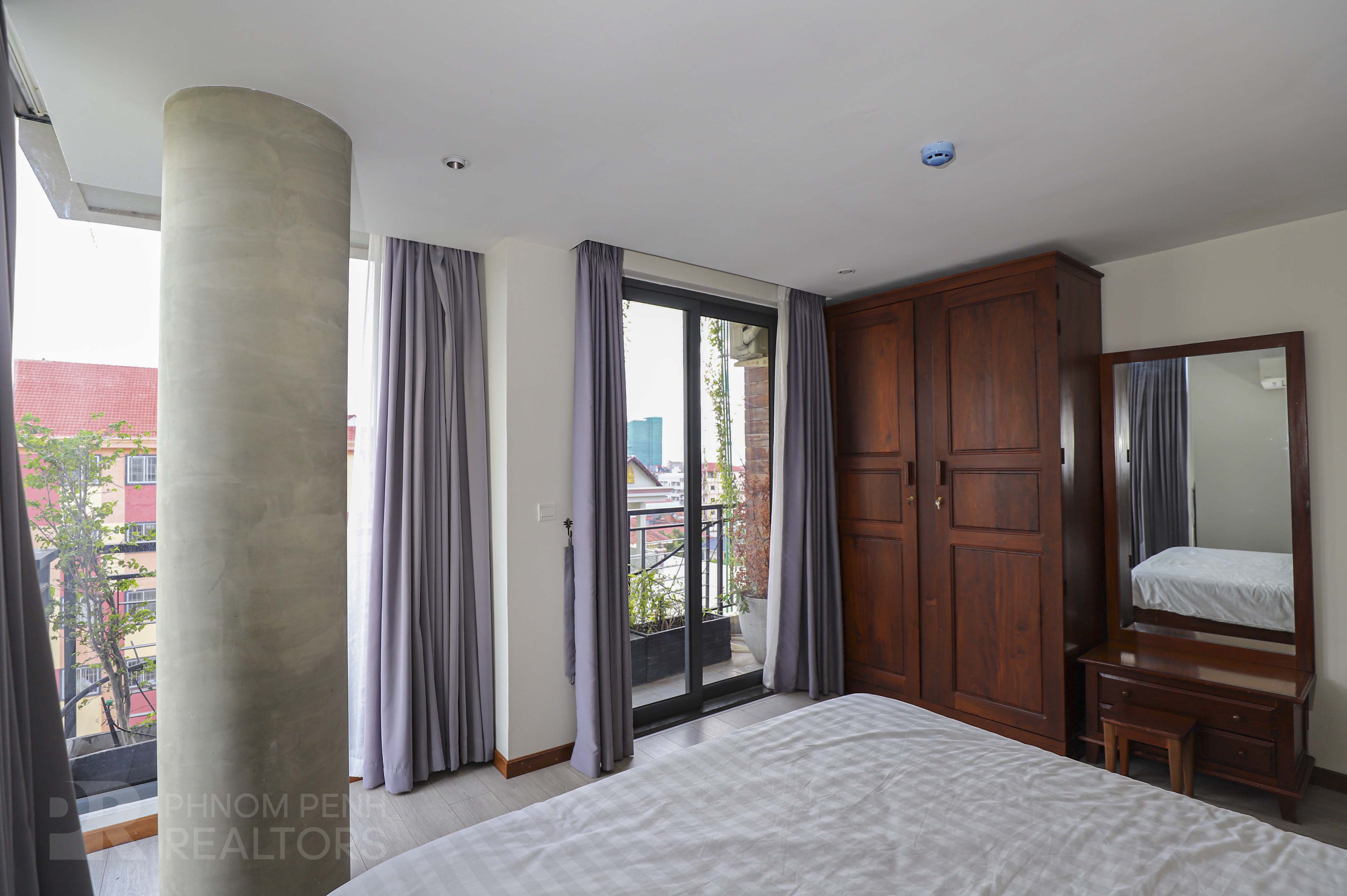 This apartment is located in Boeung Tra bek it has 1 bedroom, 1 bathroom, closets, furnished, natural light, outdoor space, rooftop and city view. The unit is equipped with a balcony, stove, refrigerator and a washing machine. Building amenities include security, internet, cable, cleaning once a week, garbage collection, generator and parking ( car ,motorbike and bicycle).