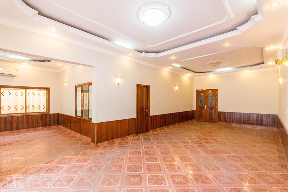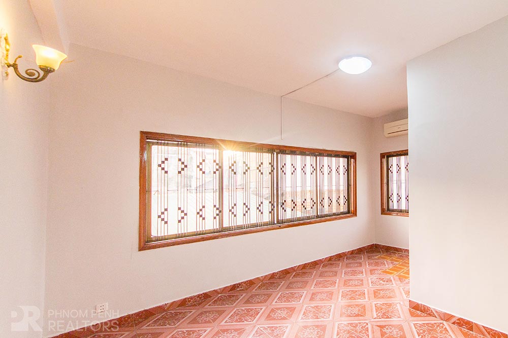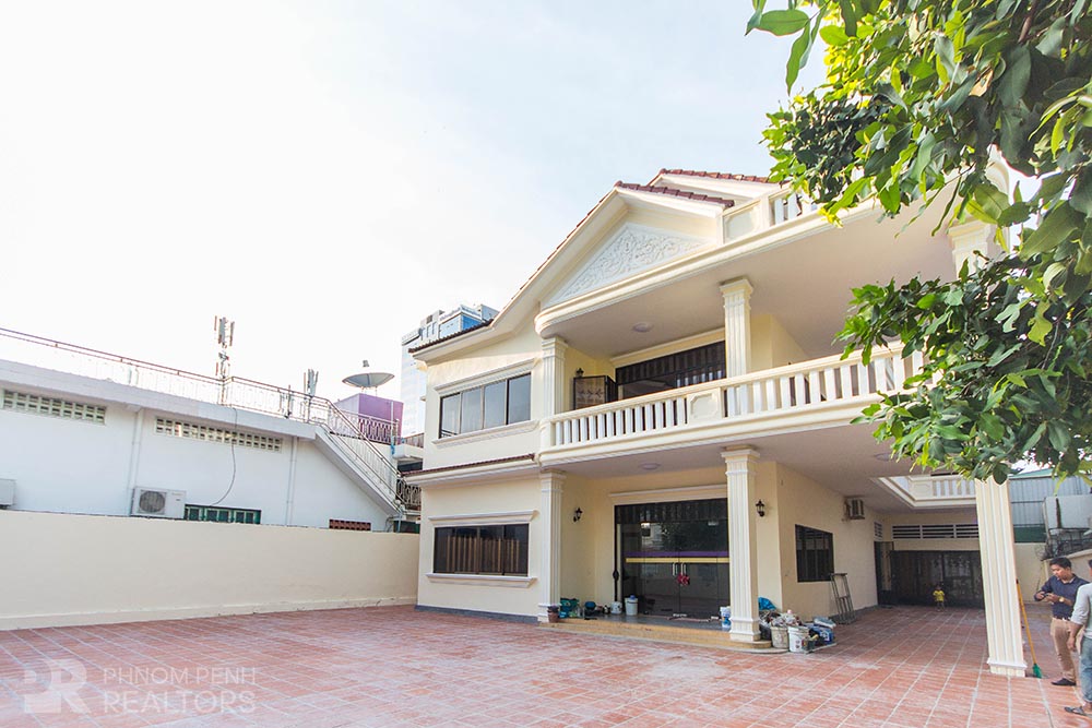 This beautiful villa is located in Chak Tomuk area neighborhood has 8 bedrooms, 8 bathrooms and a lot of natural light. This villa equipped with air-con, hot water and balconies. This villa amenities include with parking space for car, moto and bicycle.