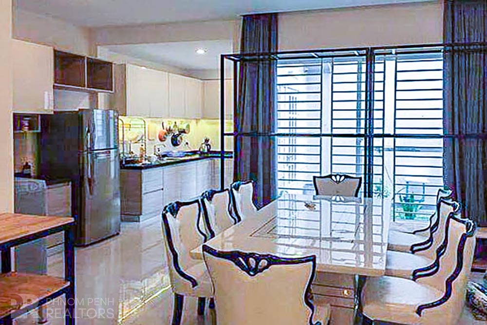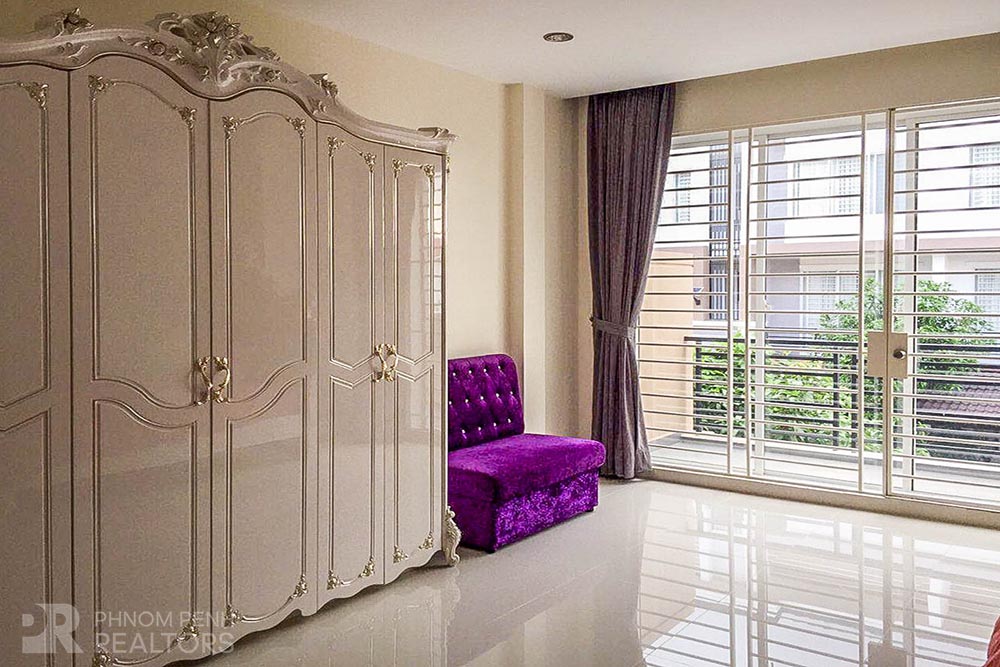 This beautiful link house is located in Chbar Ampov area neighborhood has 4 bedrooms, 5 bathrooms and a lot of natural light. This furnished link house equipped with air-con, hot water and balconies. This link house amenities include with parking space for car, moto and bicycle.