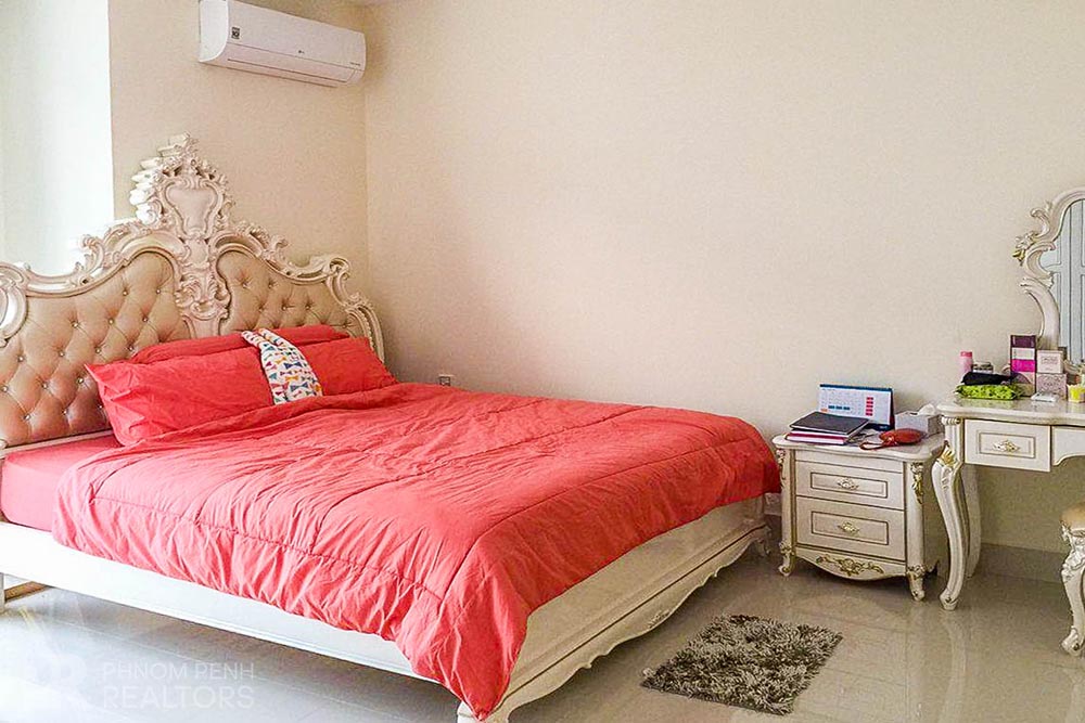 This beautiful link house is located in Chbar Ampov area neighborhood has 4 bedrooms, 5 bathrooms and a lot of natural light. This furnished link house equipped with air-con, hot water and balconies. This link house amenities include with parking space for car, moto and bicycle.