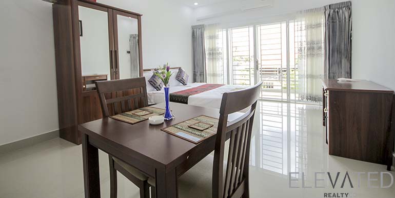 This apartment is located in Chroy Changva neighborhood has 1 bedroom, 1 bathroom, natural light, furnished, a flat screen TV and built-in closet. The unit is equipped with a big balcony. Building amenities include internet, cable, cleaning 2 times a week, propane, garbage collection, and motorbike, bicycle parking.