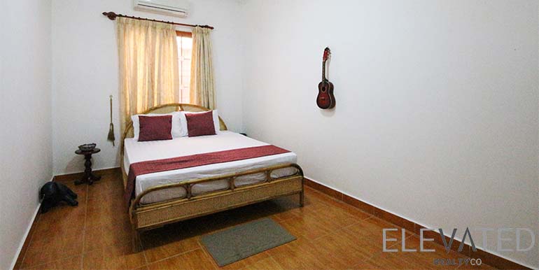 This modern villa is located in Chroy Changva neighborhood has 4 bedrooms, 3 bathrooms, natural light, hardwood floor, flat screen TVs, and furnishings. The unit is equipped with a balcony, terrace, and a washing machine. Building amenities include garbage collection, and car, motorbike, bicycle parking.