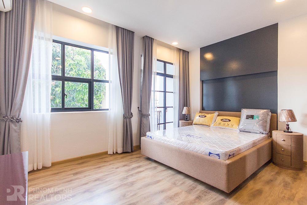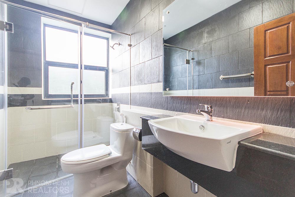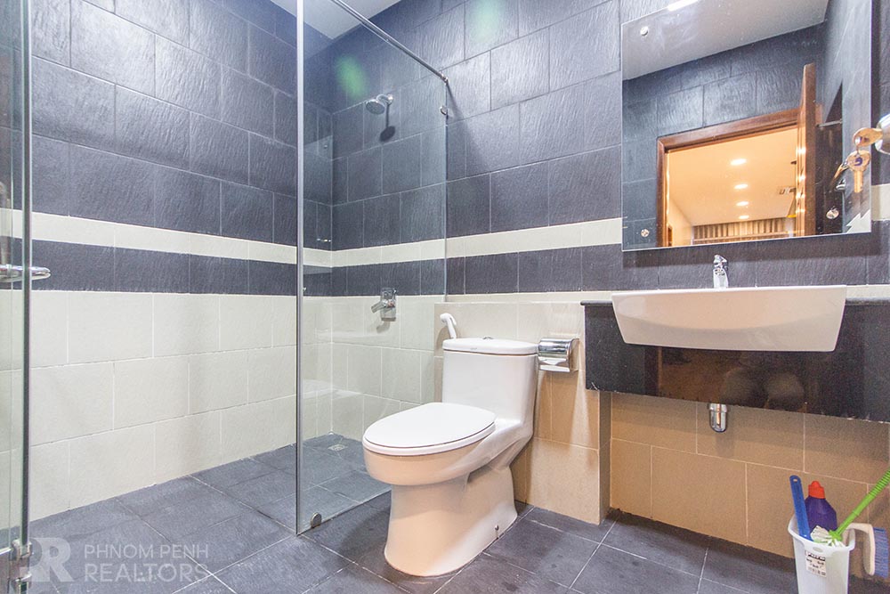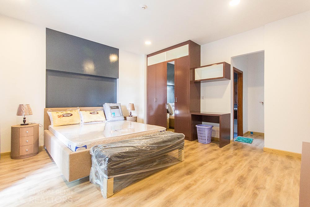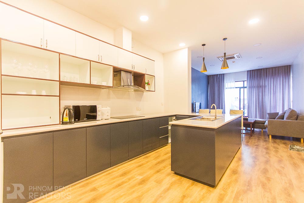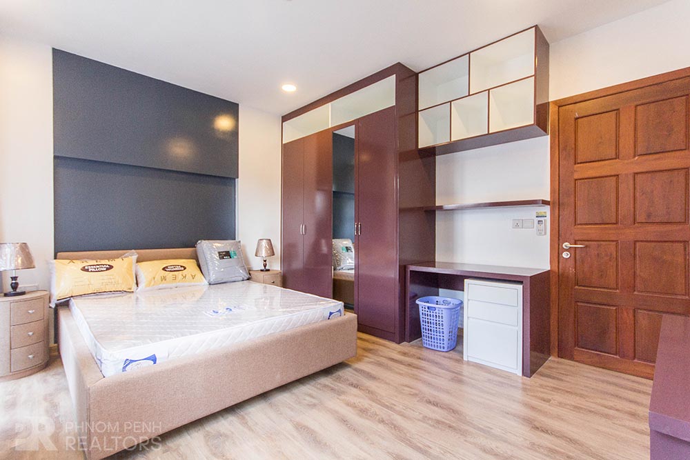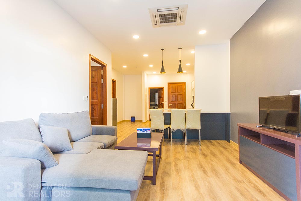 This beautiful apartment is located in the Daun Penh area neighborhood has 2 bedrooms, 2 bathrooms and natural light. This furnished unit is equipped with air-con, refrigerator, microwave, hot water, washing machine, built-in closet, a flat screen TV and balconies. The unit services included with internet and cable TV. This building amenities include with security, parking space for car, moto and bicycle.