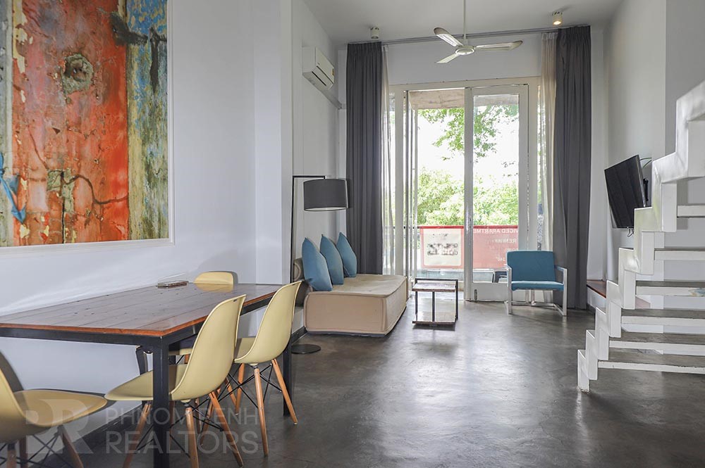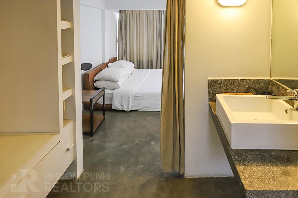 This Apartment is located in Chaktukmuk it has 1 bedroom, 2 bathrooms, closets, natural light, outdoor space and furnished. The unit is equipped with a balcony, kitchen, stove, cabinets, refrigerator and a washing machine. Building amenities include Wi-Fi garbage , collection, propane, security , cleaning full week and parking (motorbike and bicycle).