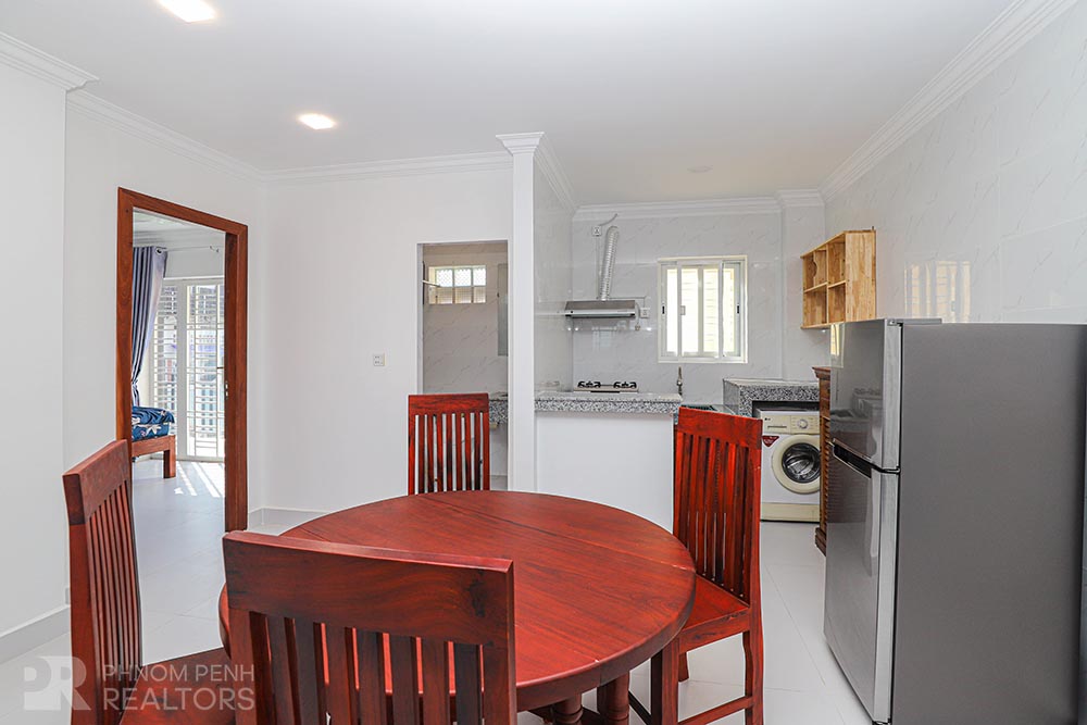 This townhouse located in Daun Penh . it has 2 bedroom , 2 bathroom . This fully furnished unit is equipped with air-con , sofa, refrigerator , flat screen TV , propane , closets and washing machine .This townhouse include with parking moto ,and bicycle.
