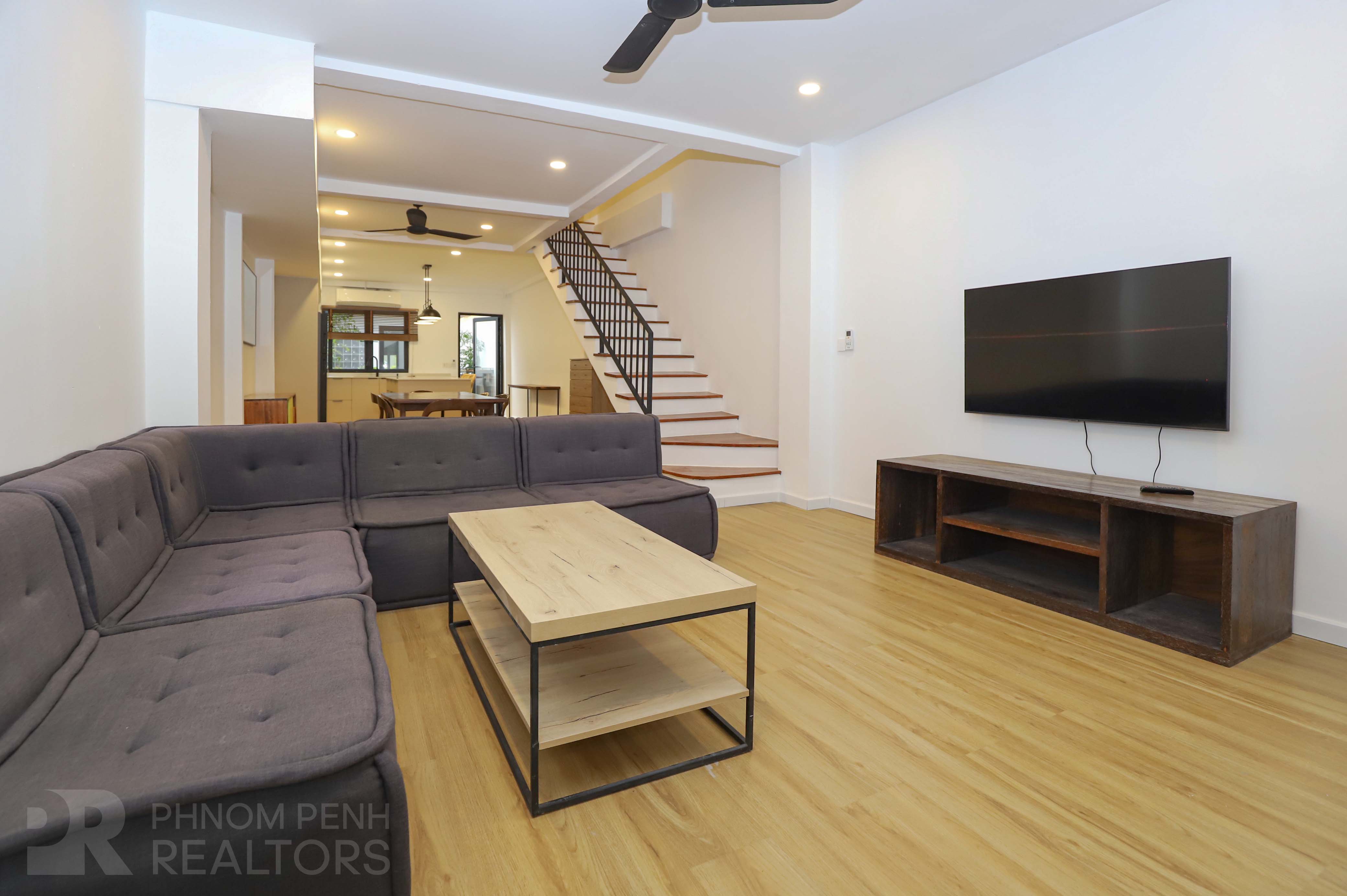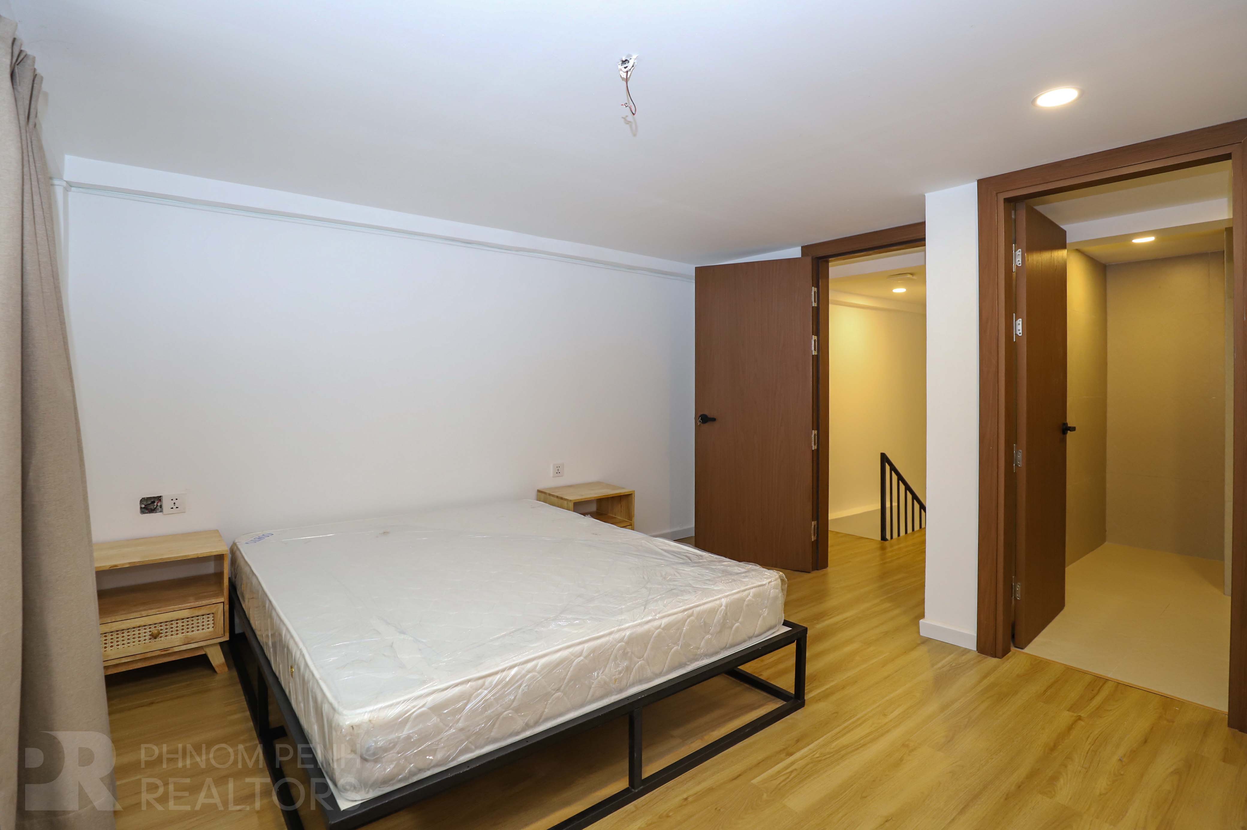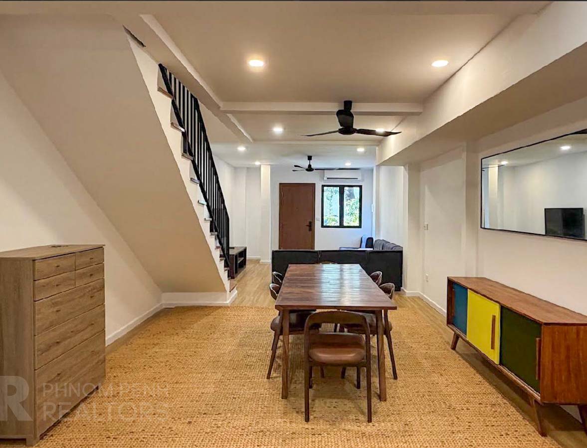 This nice townhouse is located in Chaktumuk area it has 2 bedrooms, 2bathrooms, built in closets, a flat screen TV, natural light, and new furnishings. The unit is equipped with , oven , refrigerator , dining table , nice sofa and a washing machine. Building amenities include, internet, , garbage collection, and , motorbike, bicycle parking.
