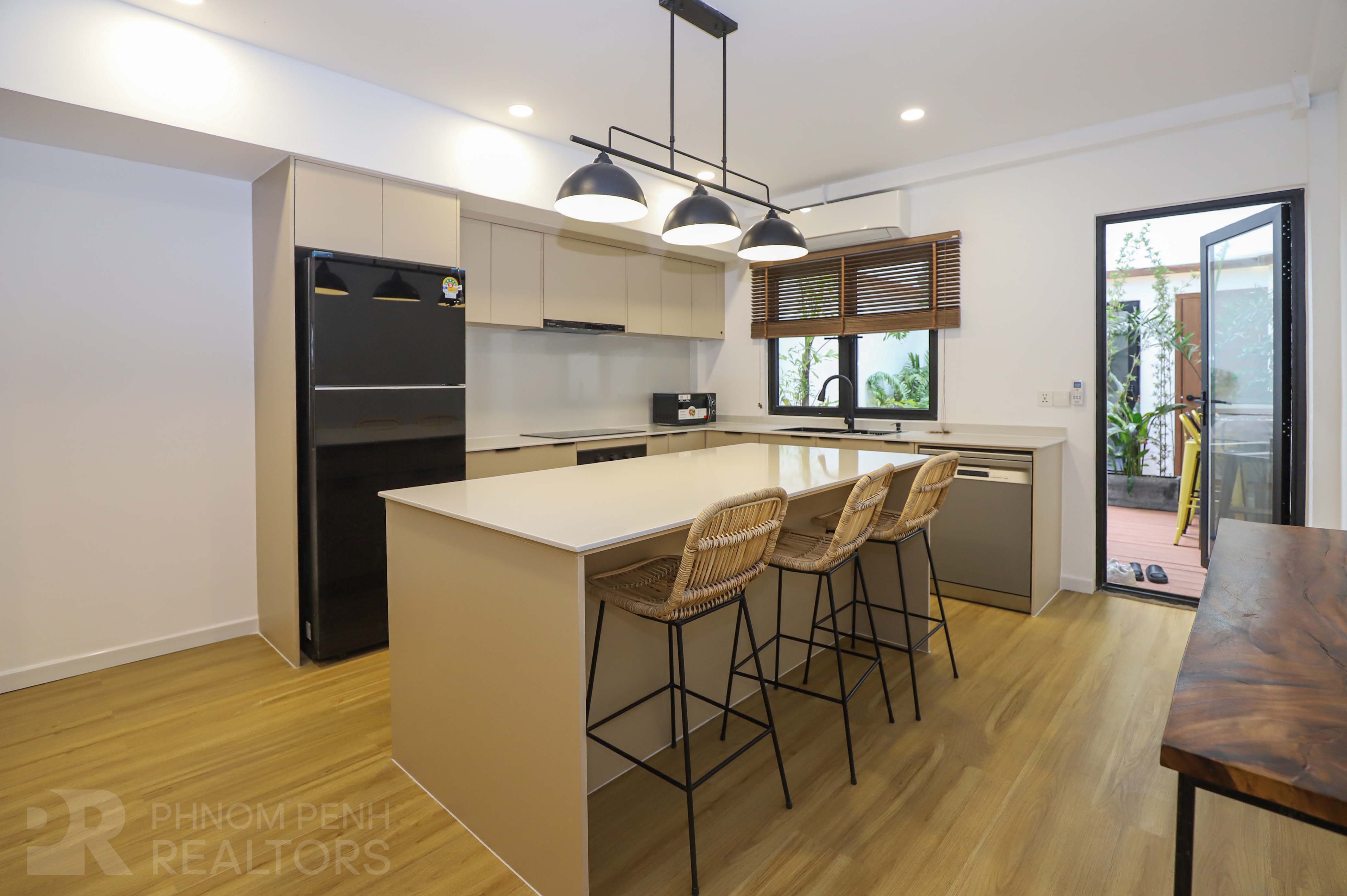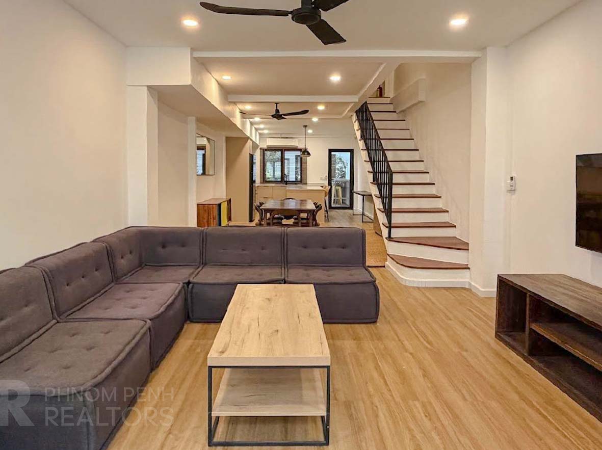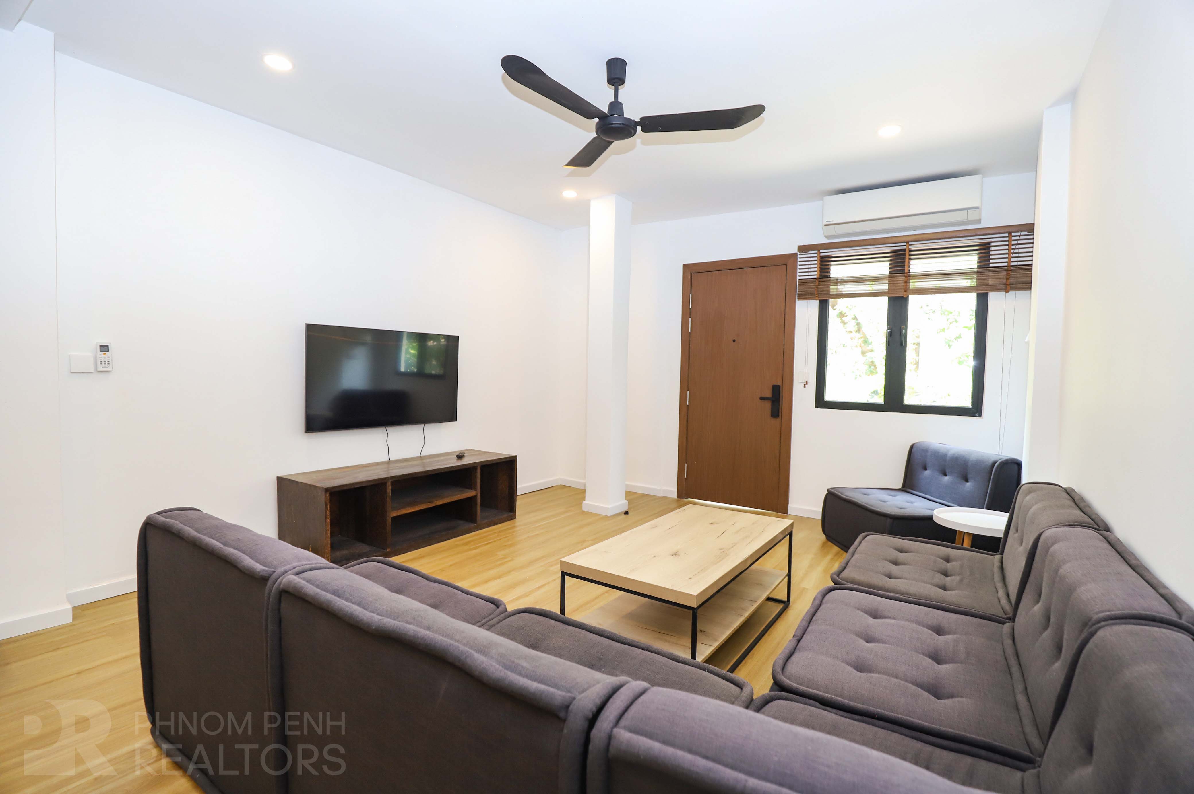 This nice townhouse is located in Chaktumuk area it has 2 bedrooms, 2bathrooms, built in closets, a flat screen TV, natural light, and new furnishings. The unit is equipped with , oven , refrigerator , dining table , nice sofa and a washing machine. Building amenities include, internet, , garbage collection, and , motorbike, bicycle parking.