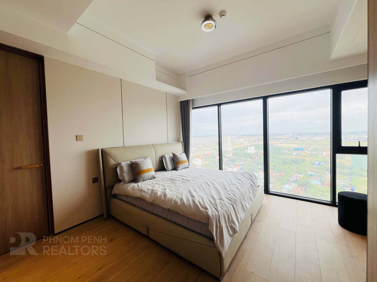 This Condominium is full of natural lights, it’s located in Koh Norea Area . It is 5 minute to Koh Pich highly developing area in phnom penh . It has 2 Bedrooms 2bathrooms , kitchen and river view. This unit equipped with air-con, Hot water , stove, flat screen TV, closet and refrigerator, , Facilities There are Swimming pool , and fitness center. . The shop in the condominium included Restaurant coffee , and mini mart . Very comfortable for living and rental .