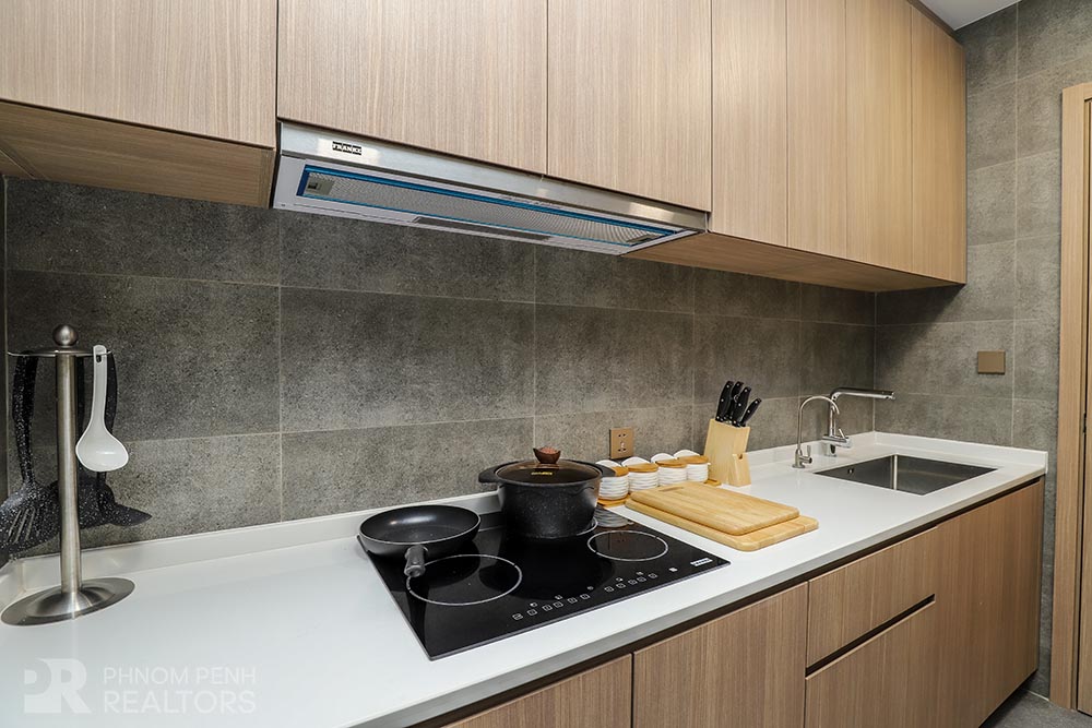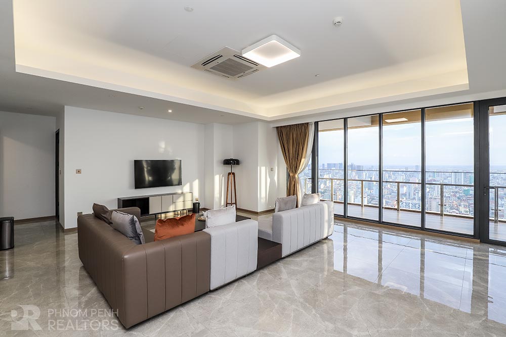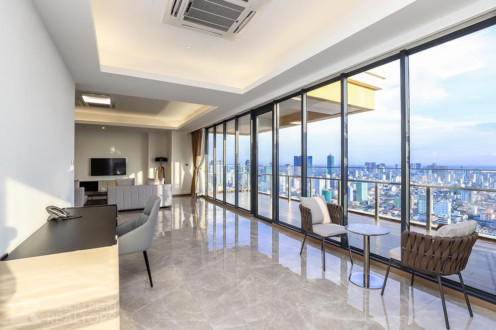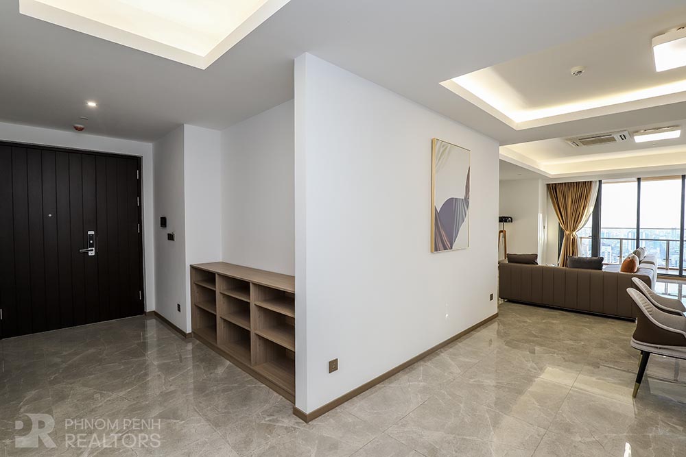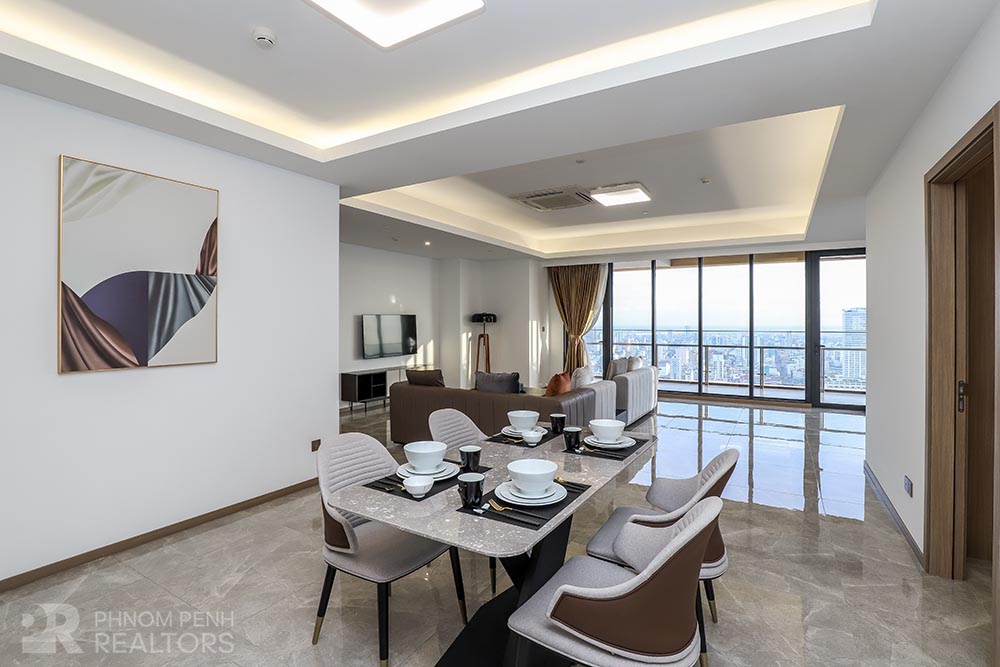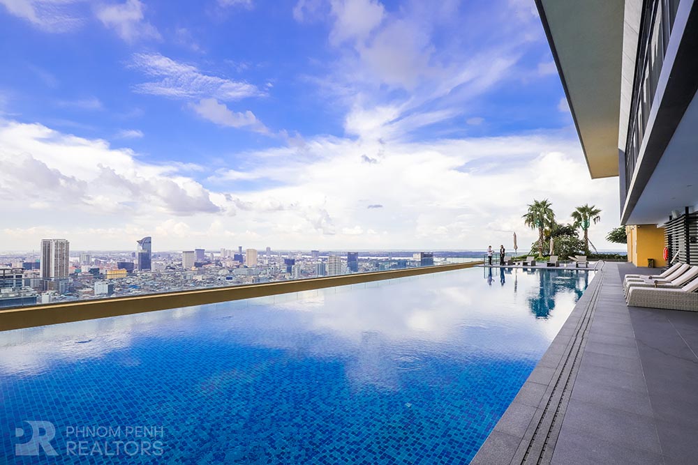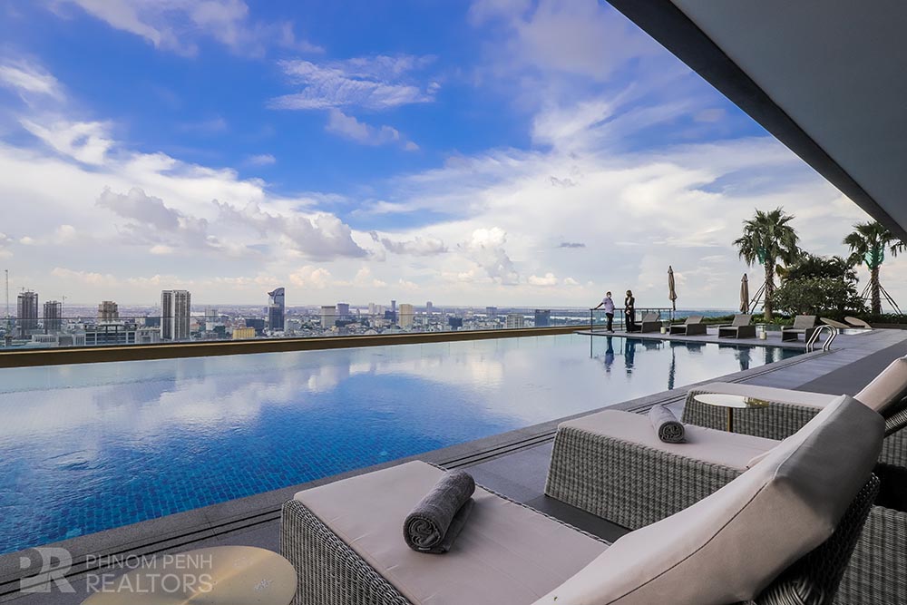 This specious condominium is located in Olympic neighborhood consists 2 bedrooms, 3 bathrooms, 1 storage, a large living room and big balcony full of natural light and show you a really beautiful view of Capital Phnom Penh. This unit designed with built-in closet, separated kitchen and dining area. The living room and some parts of bedrooms designed with glass walls that really let the lights come through the whole unit to make it look very cozy and fresh. This unit provided flat screen TVs, air cons, hot water, microwave, kitchenware, dish washing machine, washing machine plus new and fully furnished to make you easier and just ready to stay. For further convenient, the condominium included the services such as cleaning twice a week, internet, cable TV, propane, generator and garbage collection. The price is already included with management fee and free access to steam, sauna, gym, sky pool, common area, elevator, parking for car, motorbike, bicycle with 24h security at all entries.