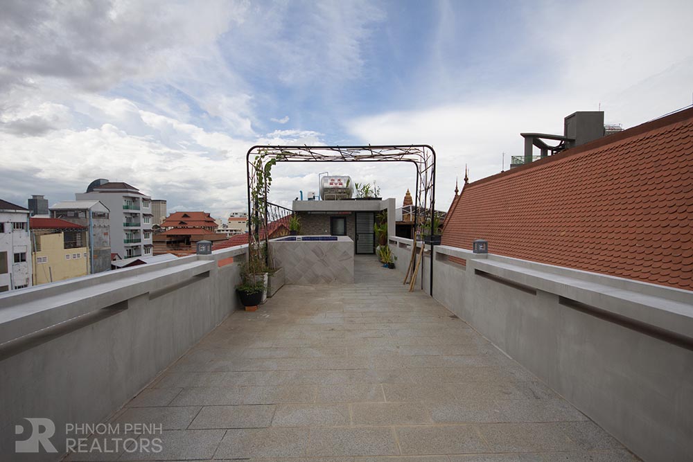 This apartment is located in Chey Chumneas neighborhood has 1 bedroom, 1 bathroom, hardwood floors and natural light. The unit is equipped with new furnishings, a balcony, in-unit washing machine and a flat screen TV. Building amenities include internet, cable, water supply, garbage collection, cleaning twice a week, security, propane, jacuzzi, shared rooftop, motorbike and bicycle parking.