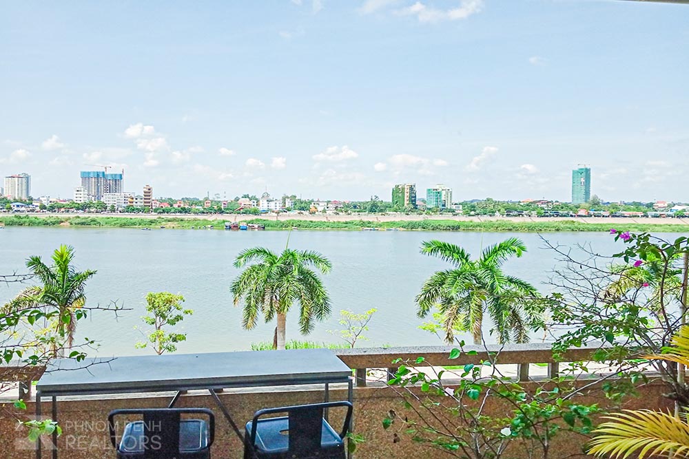 This charming river facing apartment located in Riverside area, it has 2 bedrooms, 3 bathroom, built in closets, flat screen TVs, natural light, outdoor space and furnished. The unit is equipped with a living room boasts a large open terrace overlooking Tonle Sap River, oven, refrigerator and a washing machine. Building amenities include security, cleaning in comment area and parking (motorbike and bicycle). Excluded $150 Management fee and water, internet and cable 60$ .