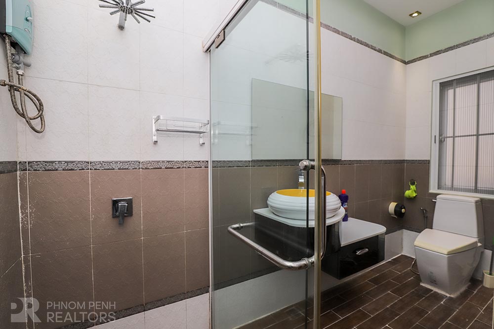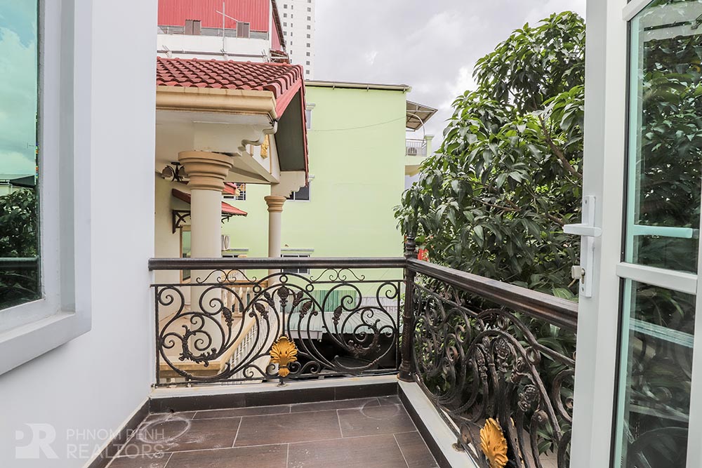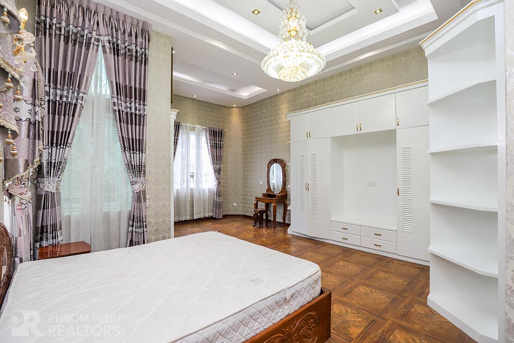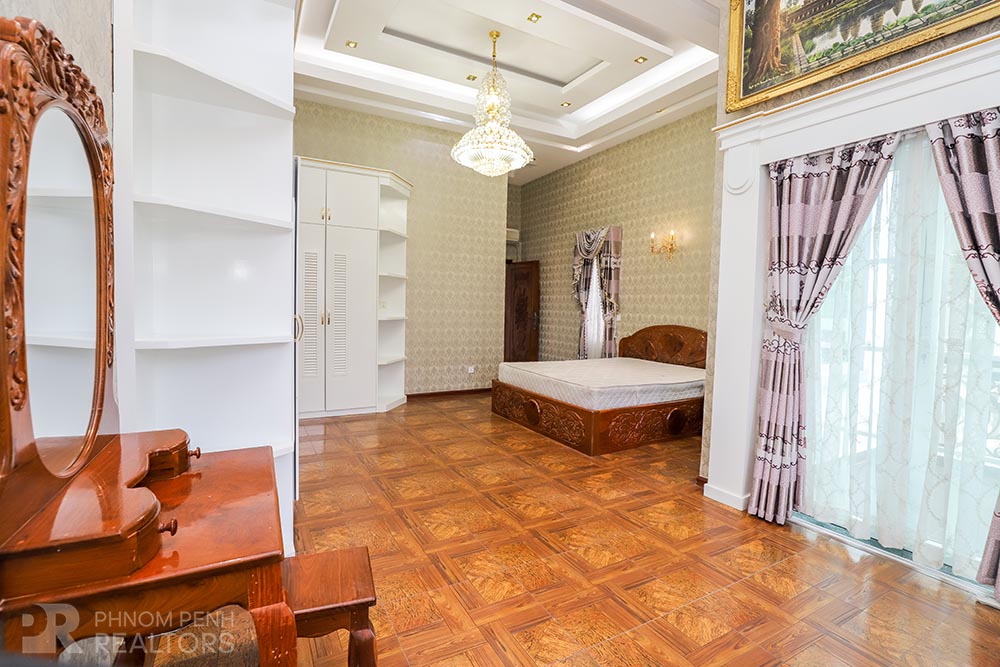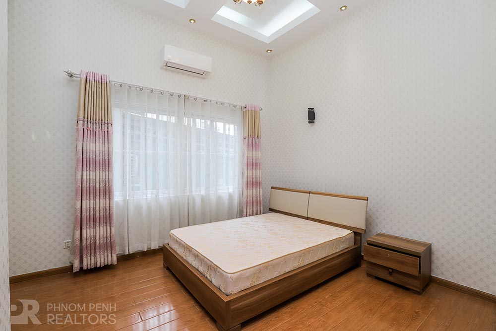 This large villa is located in Beung Trabek area has 6 bedrooms, 5 bathrooms and a balcony. This furnished unit is equipped with air cons, hot water, oven and a flat screen TV. Building amenities equipped, parking space for cars, motorbikes and bicycles.