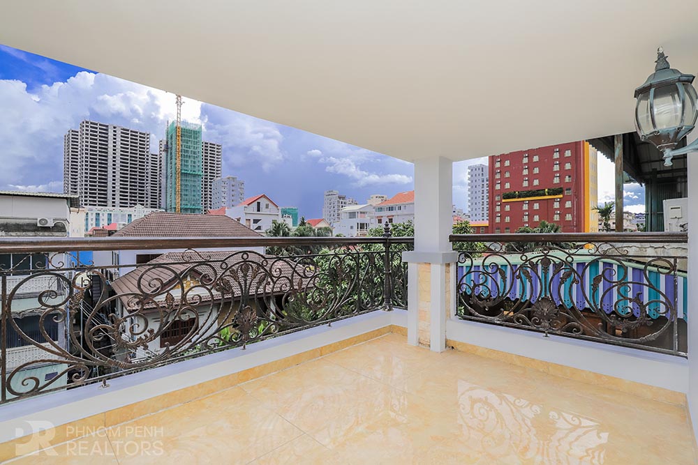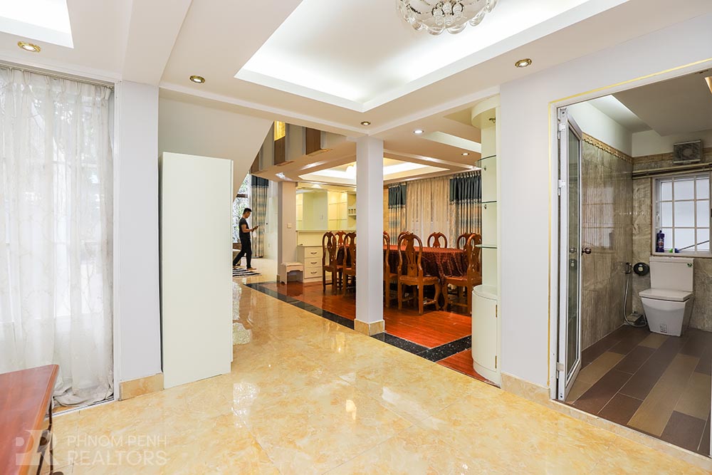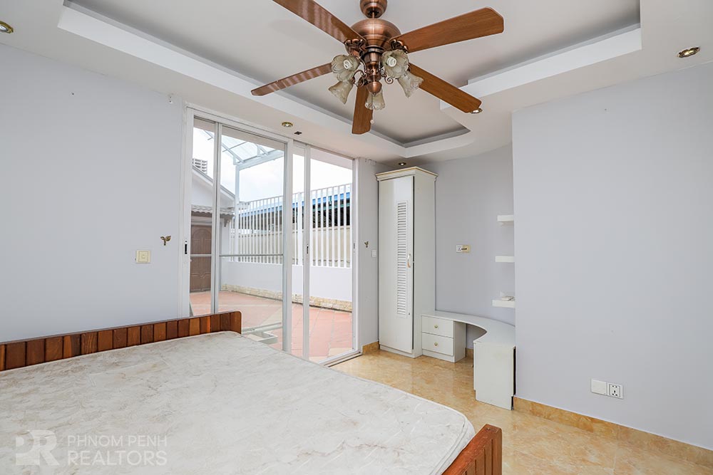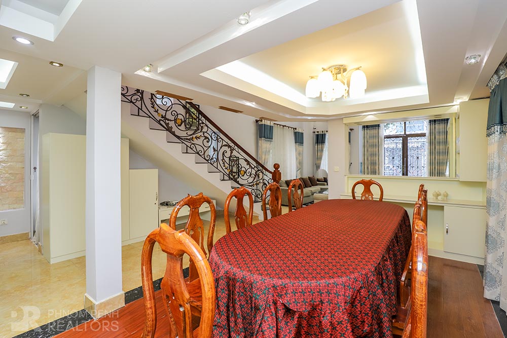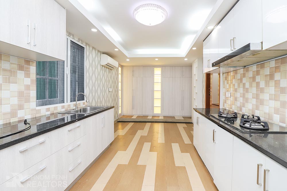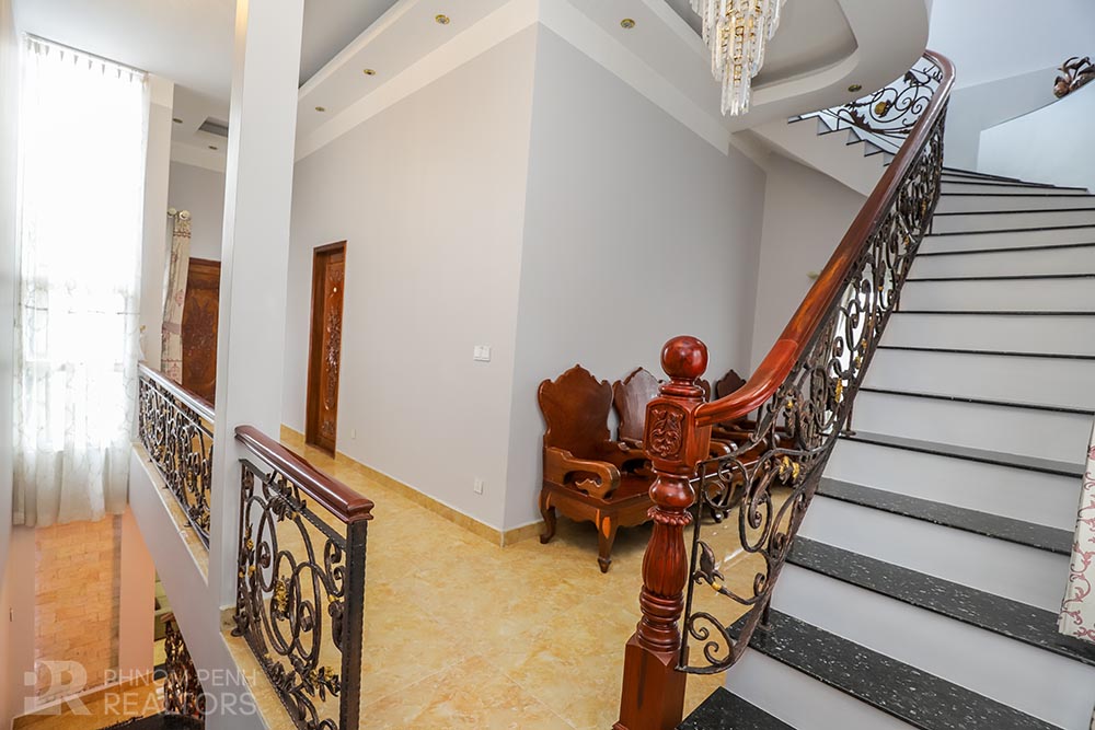 This large villa is located in Beung Trabek area has 6 bedrooms, 5 bathrooms and a balcony. This furnished unit is equipped with air cons, hot water, oven and a flat screen TV. Building amenities equipped, parking space for cars, motorbikes and bicycles.