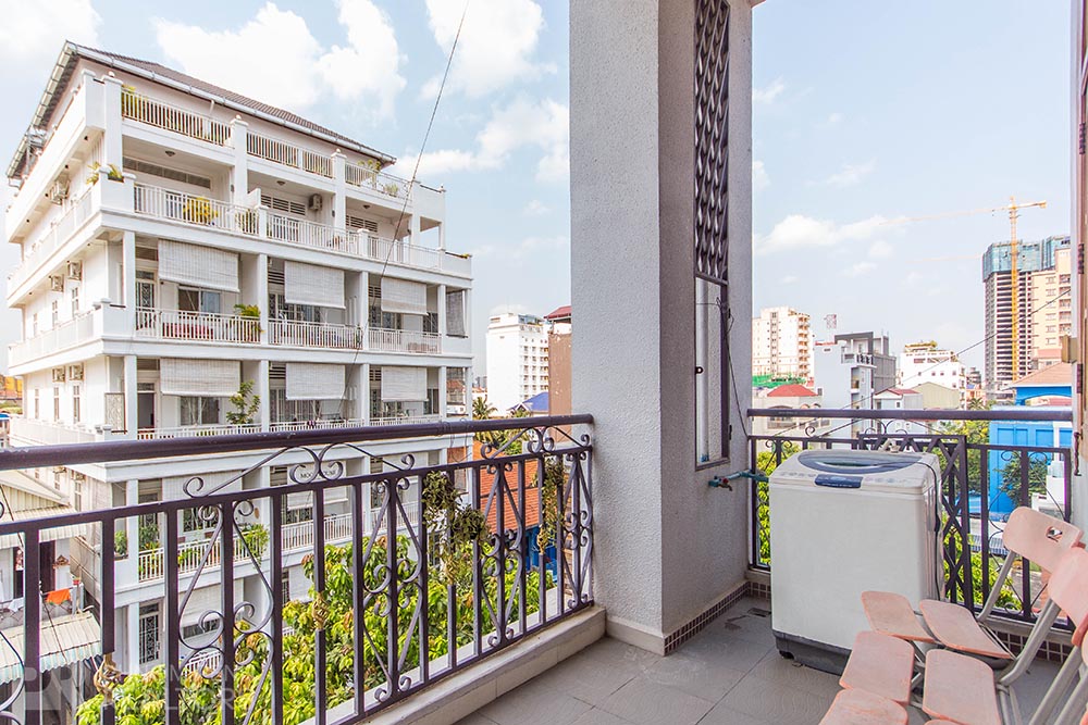 This townhouse with natural light is located in Russian Market neighborhood has 2 bedrooms, 2 bathrooms and a balcony. This furnished unit is equipped with a flat screen TV, air-cons, refrigerator, hot water, washing machine and closet. The unit services included with garbage collection and parking. Building amenities include with parking space for motorbike and bicycle.