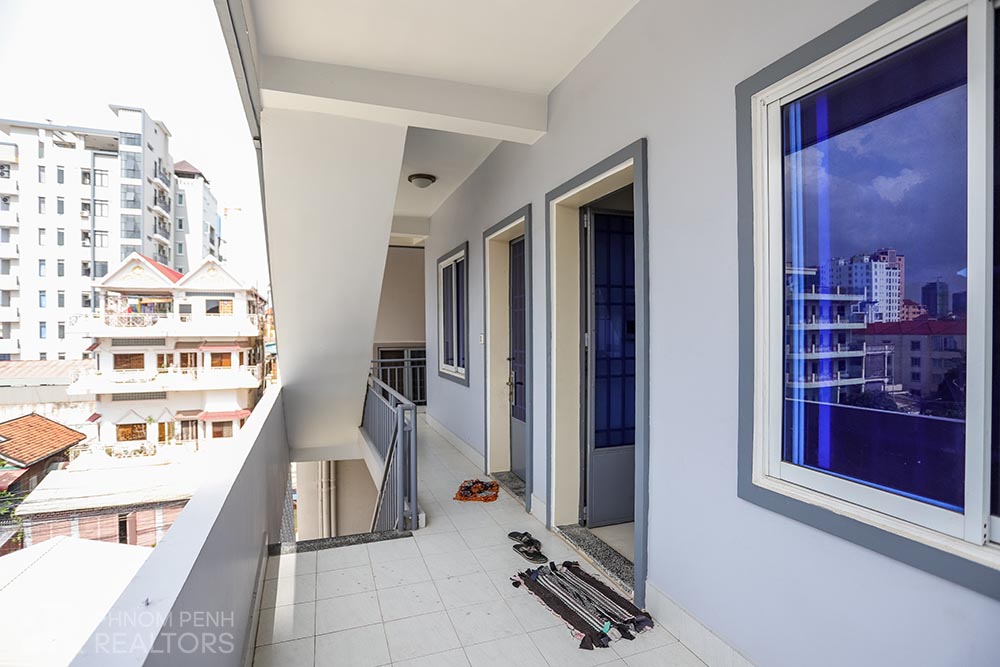 This townhouse is located in Russian Market area has 1 bedroom, 2 bathrooms and a lot of natural light. This furnished unit is equipped with a flat screen TV, air-con, hot water, washing machine, closets and balconies. The unit services included internet and cable TV. Building amenities include parking for motorbike and bicycle.