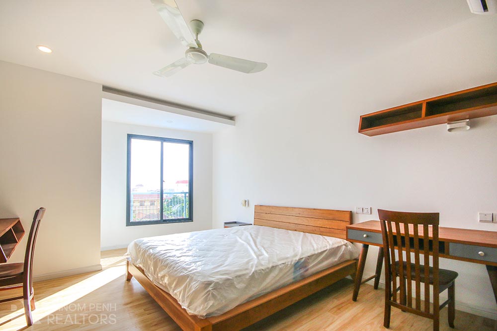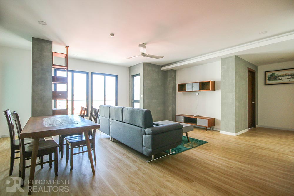 This new apartment in Russian market area has 2 bedrooms, 2 bathrooms, a balcony and a spacious open living room. This furnished unit is equipped with air cons, hot water, washing machine and a flat screen TV. Building amenities include an elevator, 24 hours security, steam room and sauna. Services include internet, cable-TV, cleaning 2 times a week and parking.