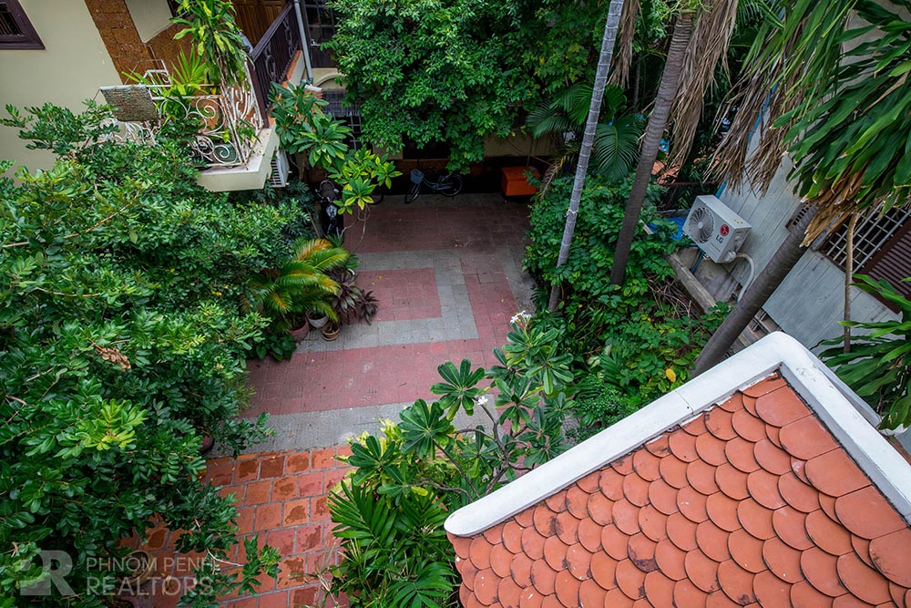 This link-house is located in Beong Trabek close to the Russian Market neighborhood has 2 bedrooms, 3 bathrooms, nice kitchen with oven and natural light. The house is equipped with furnishings, a huge balcony, in-unit washing machine, a built-in closet, a flat screen TV and a terrace. Building amenities include car, motorbike and bicycle parking.