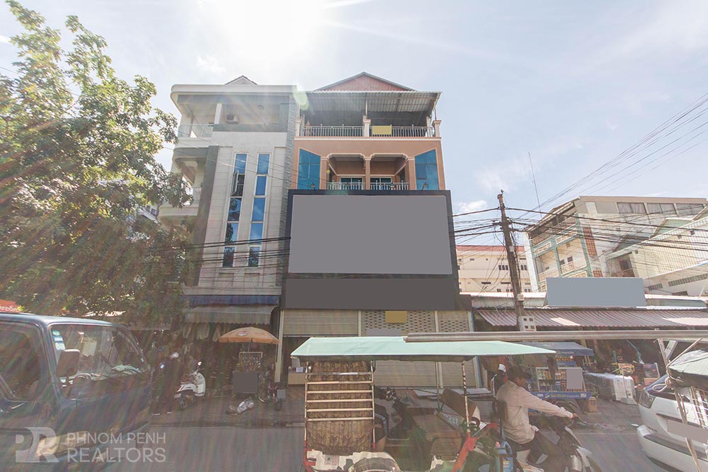 This shop house is located in Russian Market neighborhood has 3 open spaces, 8 bedrooms, 11 bathrooms and a terrace. Shop house amenities include with parking space for car, motorcycle and bicycle.