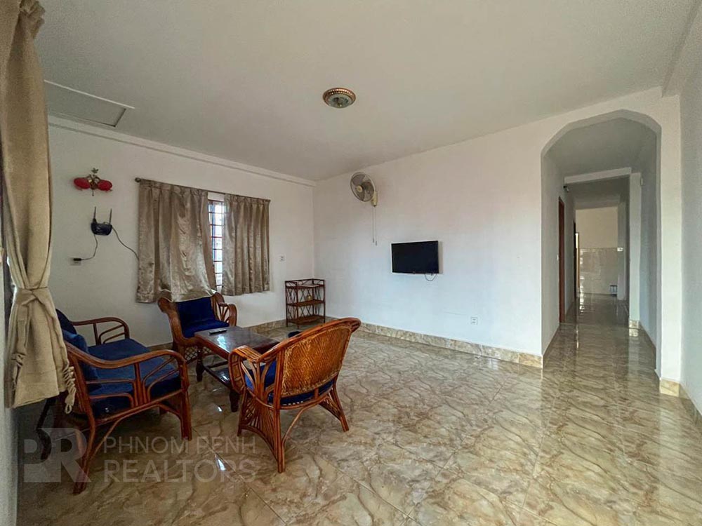 This nice townhouse is located in Toul Tompoung . It has 2 bedrooms, 1 bathroom, two closets, flat screen TVs, natural light, outdoor space and furnished. The unit is equipped with a balcony, refrigerator, stove and washing machine. Building amenities include internet, cable TV, parking (motorbike and bicycle).