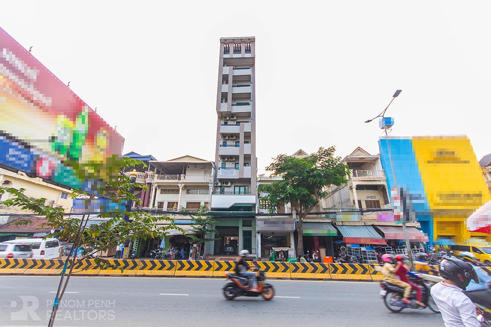This whole building apartment located in Russian Market area neighborhood has 9 units (1 bedroom has 3 units, 2 bedroom has 6 units) and 9 floors. This furnished building is equipped with air-con, refrigerator, hot water, washing machine and balconies. Building amenities include with elevator and parking space for car, moto and bicycle.