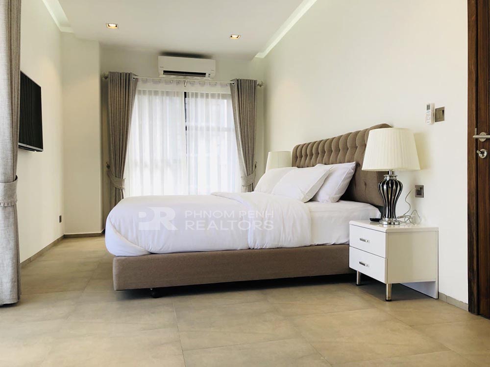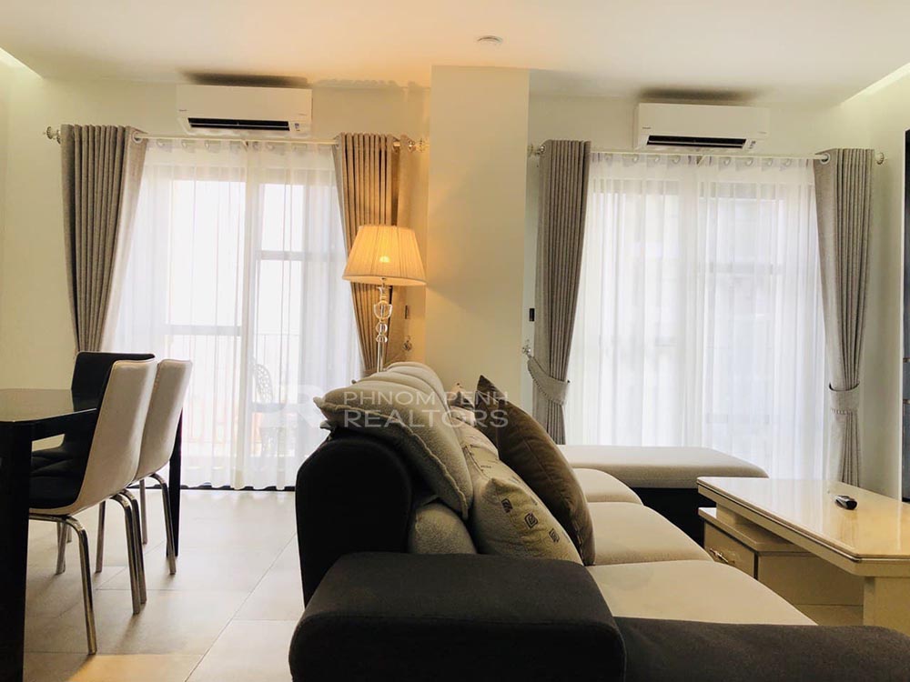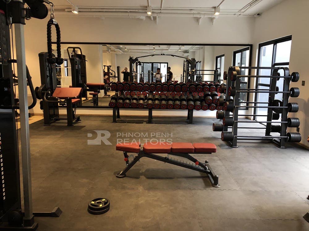 This condominium full of natural light is located in Sen Sok area neighborhood. It has 2 bedroom, 2 bathroom. This fully furnished unit is equipped with air-cons, hot waters, refrigerator, flat-screen TV and built-in closets. Building amenities include swimming pool, gym, elevator, security, and parking for car, motorcycle, bicycle.