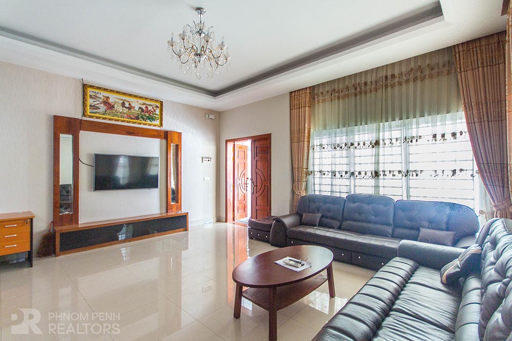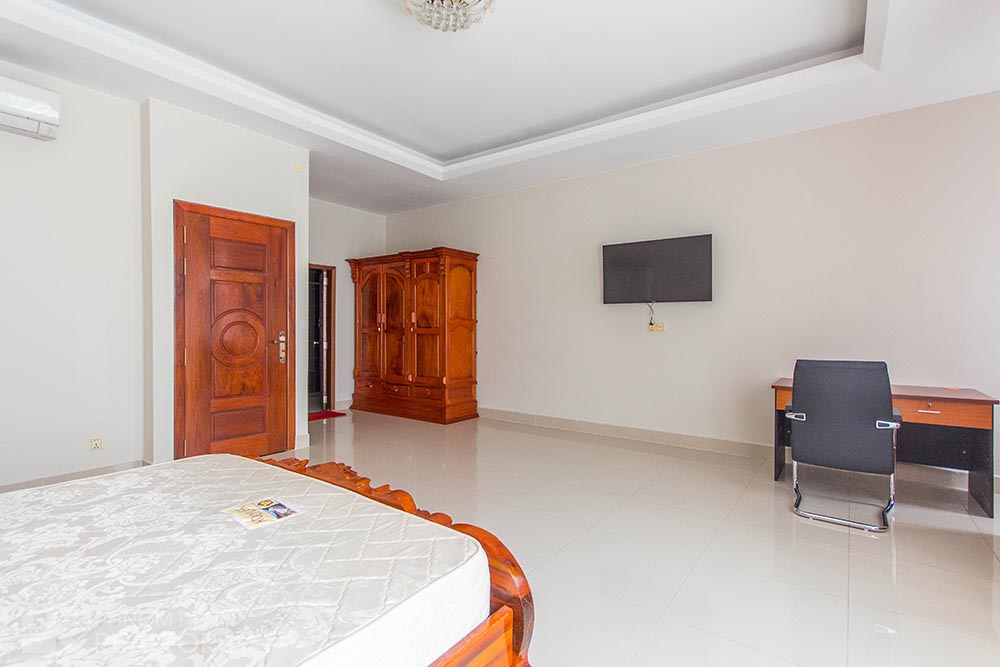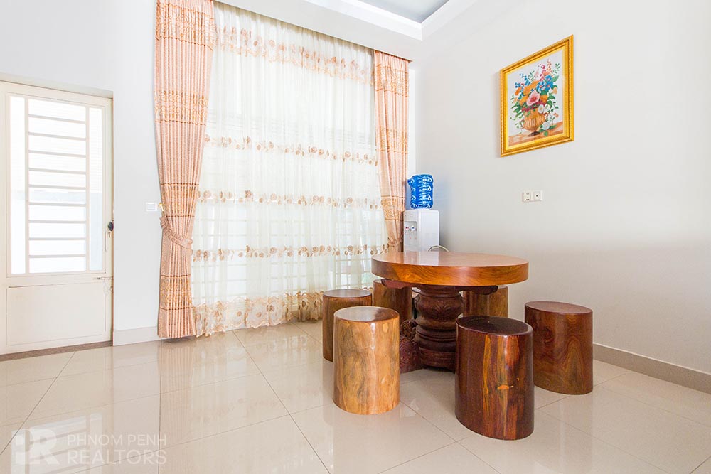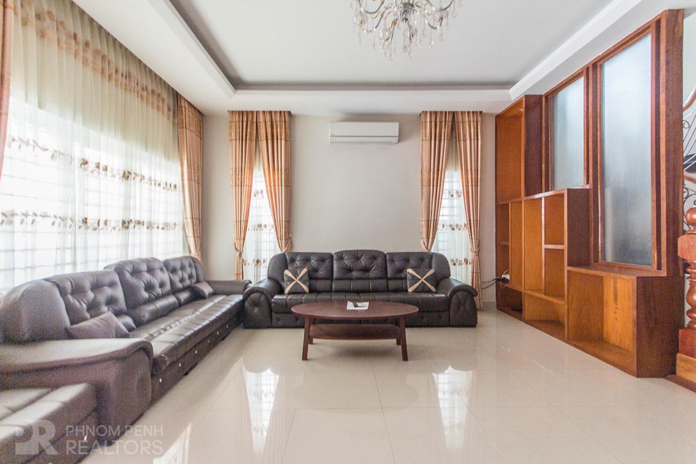 This beautiful twin villa with a lot of natural light is located in Sen Sok neighborhood has 4 bedrooms, 6 bathrooms, 2 balconies. This fully furnished villa equipped with air-cons, refrigerator, hot water, flat screen TVs, build in closets and washing machine. This unit included with internet and cable TV. This villa amenities include with parking space for car, motorbike and bicycle.