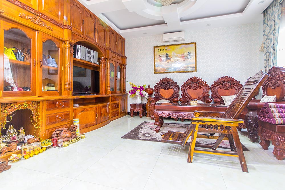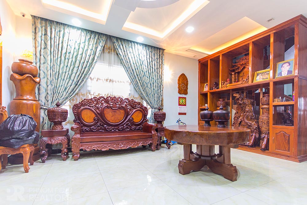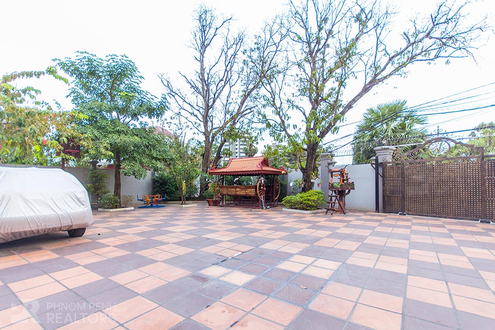 This beautiful villa is located in Sen Sok area neighborhood has 7 bedrooms, 8 bathrooms and a lot of natural light. This fully furnished villa equipped with air-con, refrigerator, hot water, a flat screen TV, build in closets, washing machine and balconies. This villa amenities include with parking space for car, moto and bicycle.