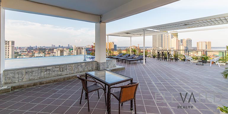 This beautiful apartment is located in the Tonle Bassac area neighborhood has 1 bedroom, 1 bathroom and a balcony. This furnished unit is equipped with a flat screen TV, air-cons, refrigerator, microwave, hot water, washing machine, built-in closets. The unit services included with the Internet, cable TV and cleaning 1 time per week. Building amenities include with security, elevator, swimming pool, Fitness center and parking space for car, motorbike and bicycle.