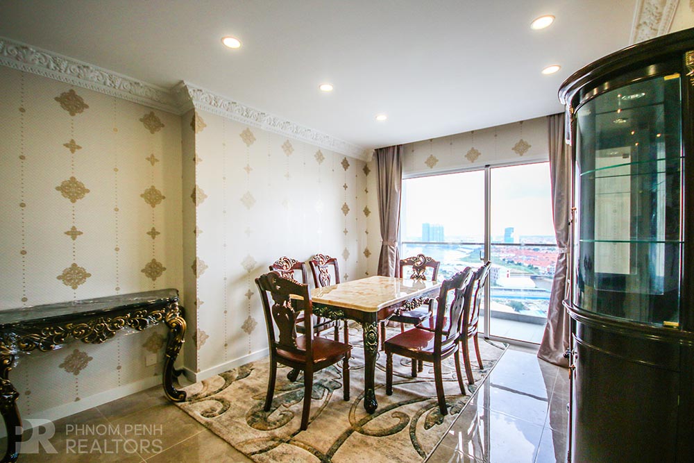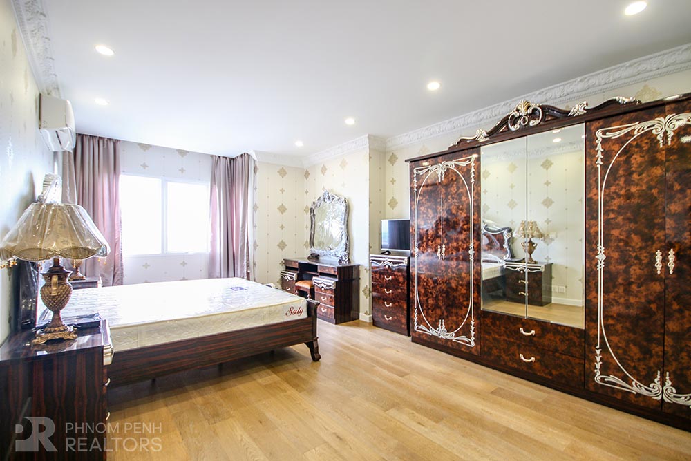 This brand new condominium is located in Tonle Bassac neighborhood has 1 bedroom, 2 bathrooms, natural light, hardwood floor, river view and city view. The unit is equipped with new furnishing, hot water, a balcony, in-unit washing machine, flat screen TVs and a built-in closet. Building amenities include generator, propane, car, motorbike and bicycle parking.
