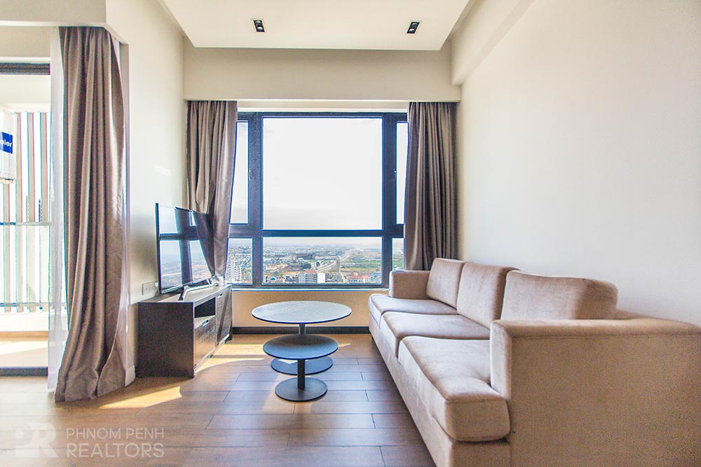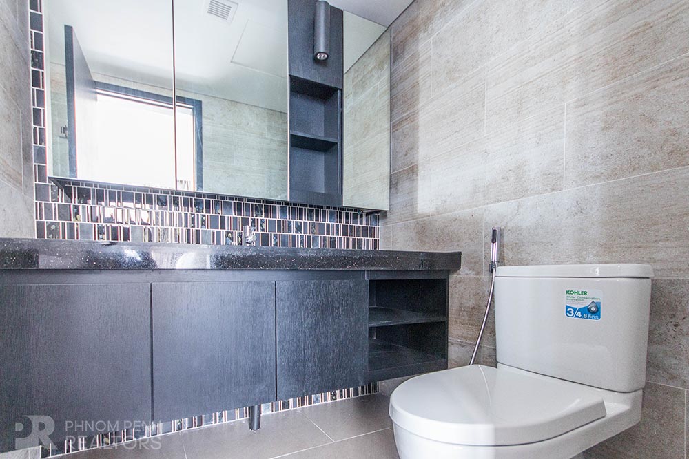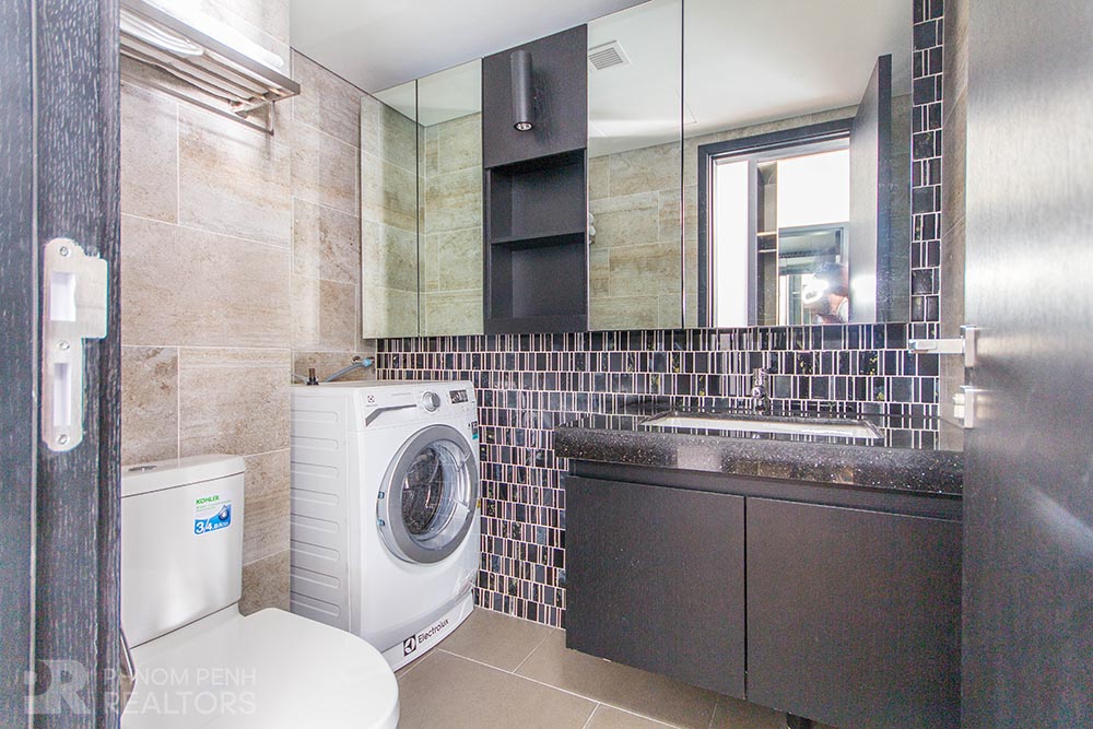 This condominium is located in Tonle Bassac neighborhood. It has 2 bedrooms, 2 bathrooms, 2 city view balconies, full of natural light. This fully furnished unit is equipped with air-cons, hot water, refrigerator, flat screen TVs. Building amenities include security, elevators, fitness center, swimming pool, sky bar, kid playground, residence lounge, sauna, yoga room, parking space for car, motorcycle and bicycle.